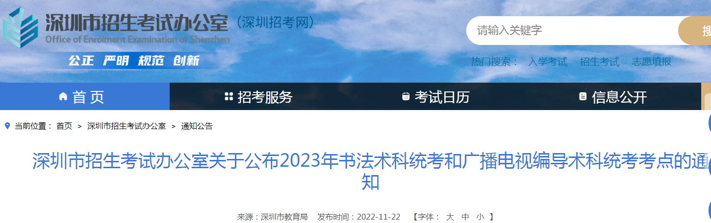 关于公布广东深圳2023年普通高考书法术科统考和广播电视编导术科统考考点的通知11-23