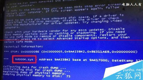 3、仅凭原因是无法正确定位的,但是蓝屏的截图中还有引起蓝屏故障的文件名:bd0004.sys 这是问题的关键!