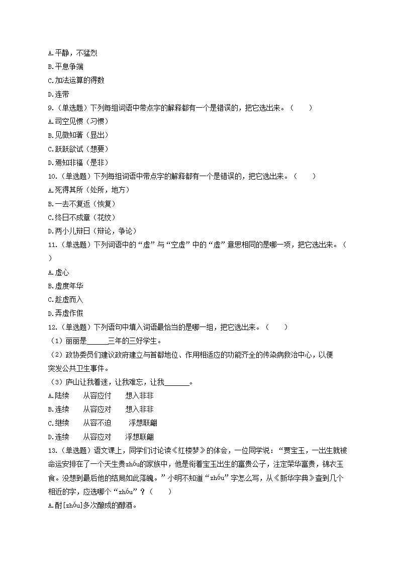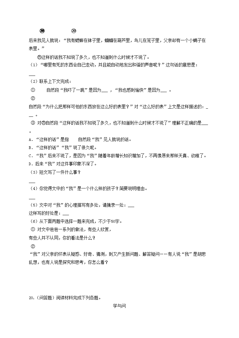2020年北京市顺义区小升初语文考试真题(Word版)06-01