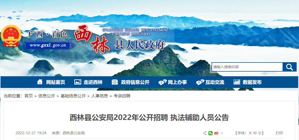 2022年广西百色西林县公安局招聘执法辅助人员16公告【报名时间12月26日-28日】12-23