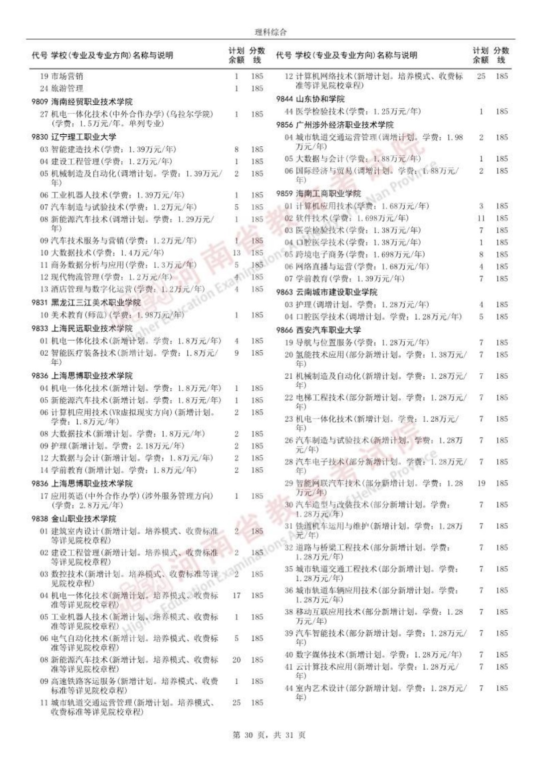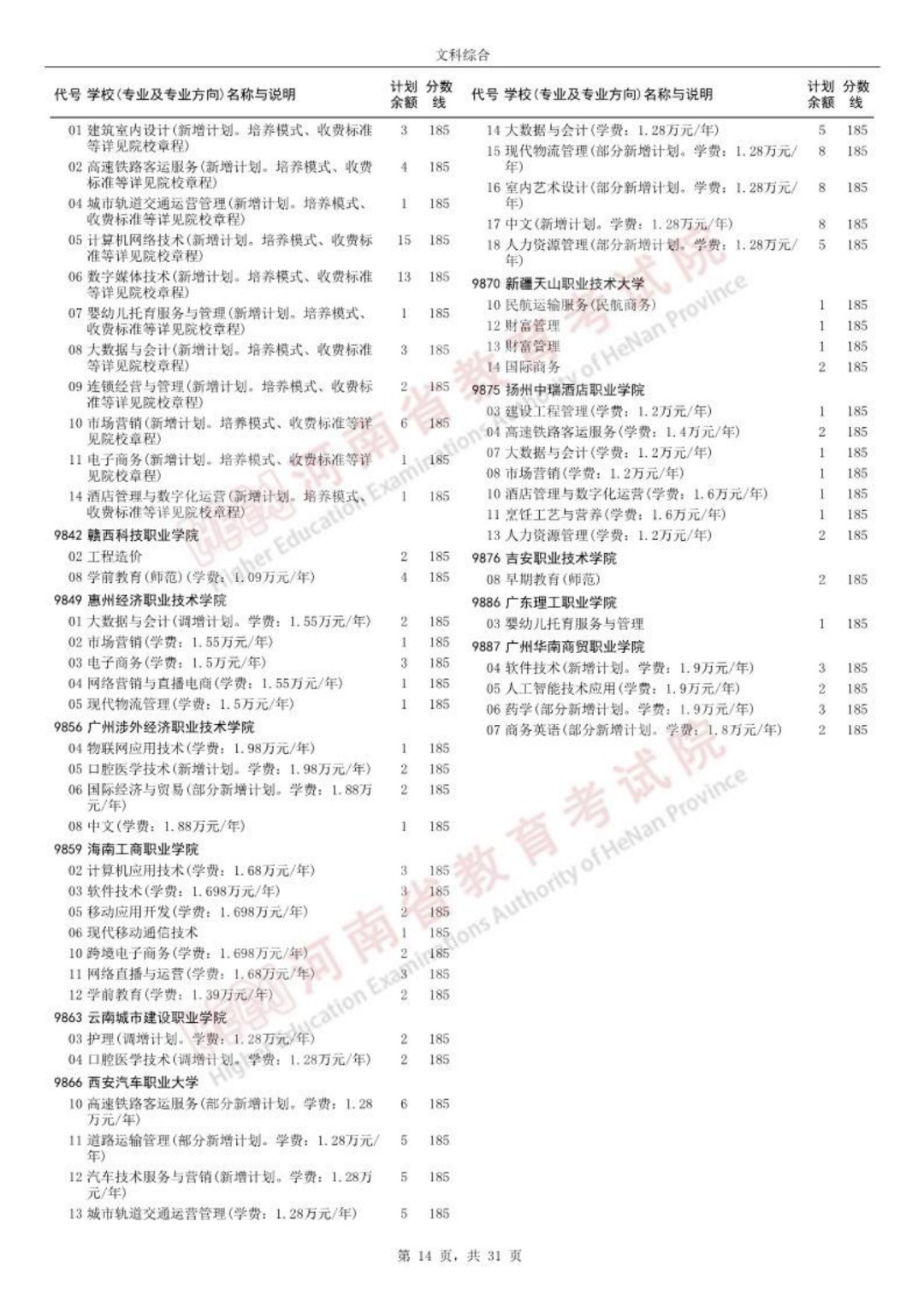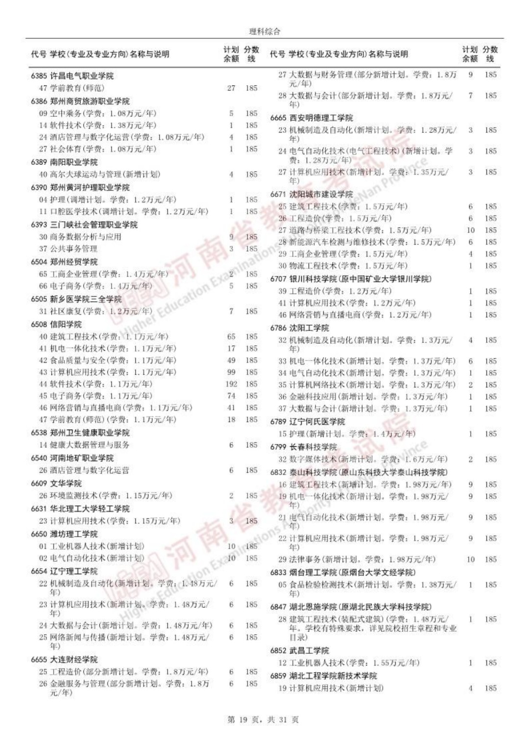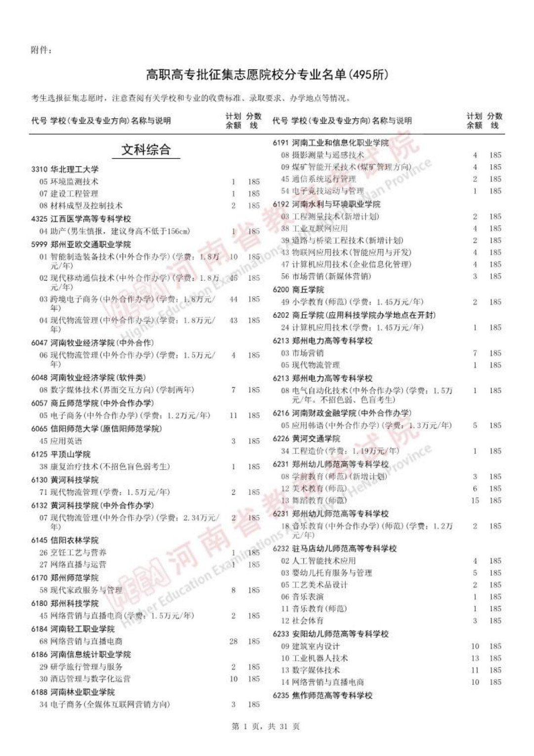 2023年河南高职高专批征集志愿院校分专业名单公布08-15