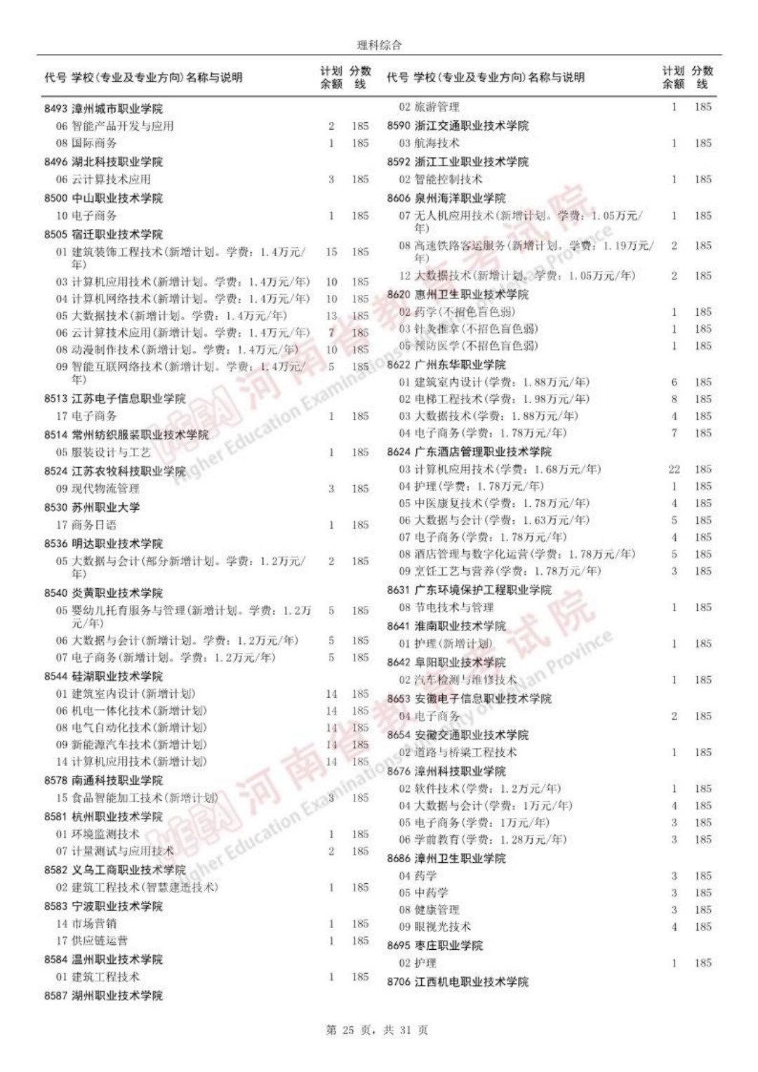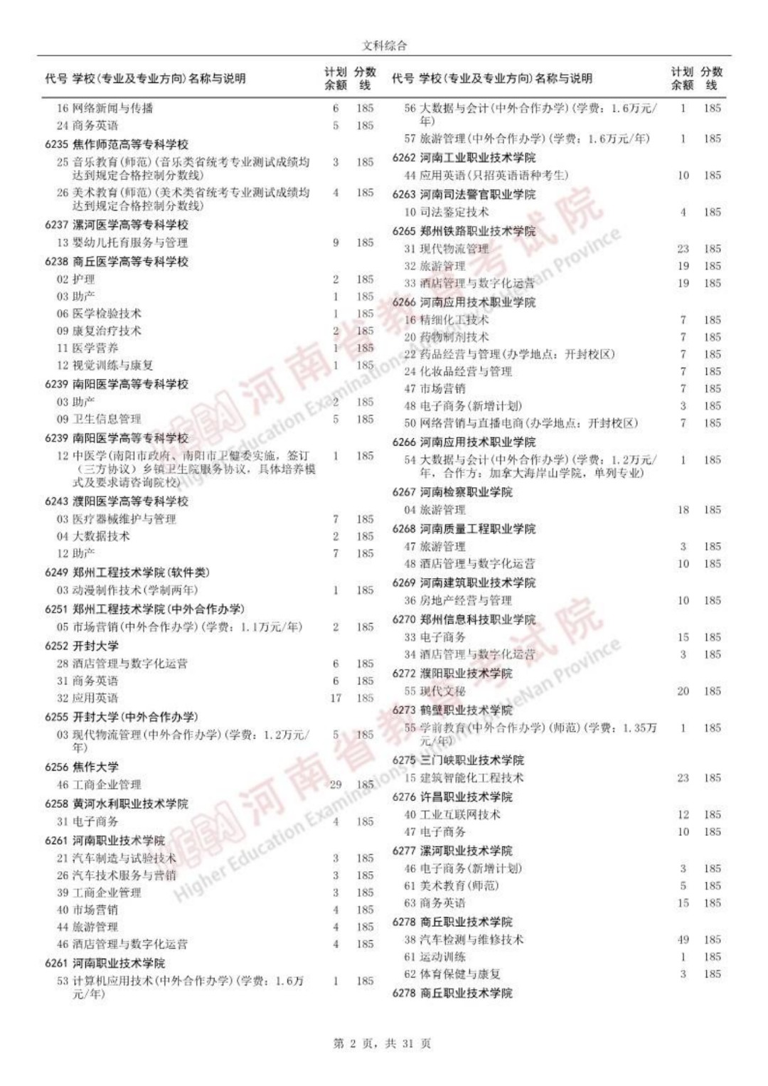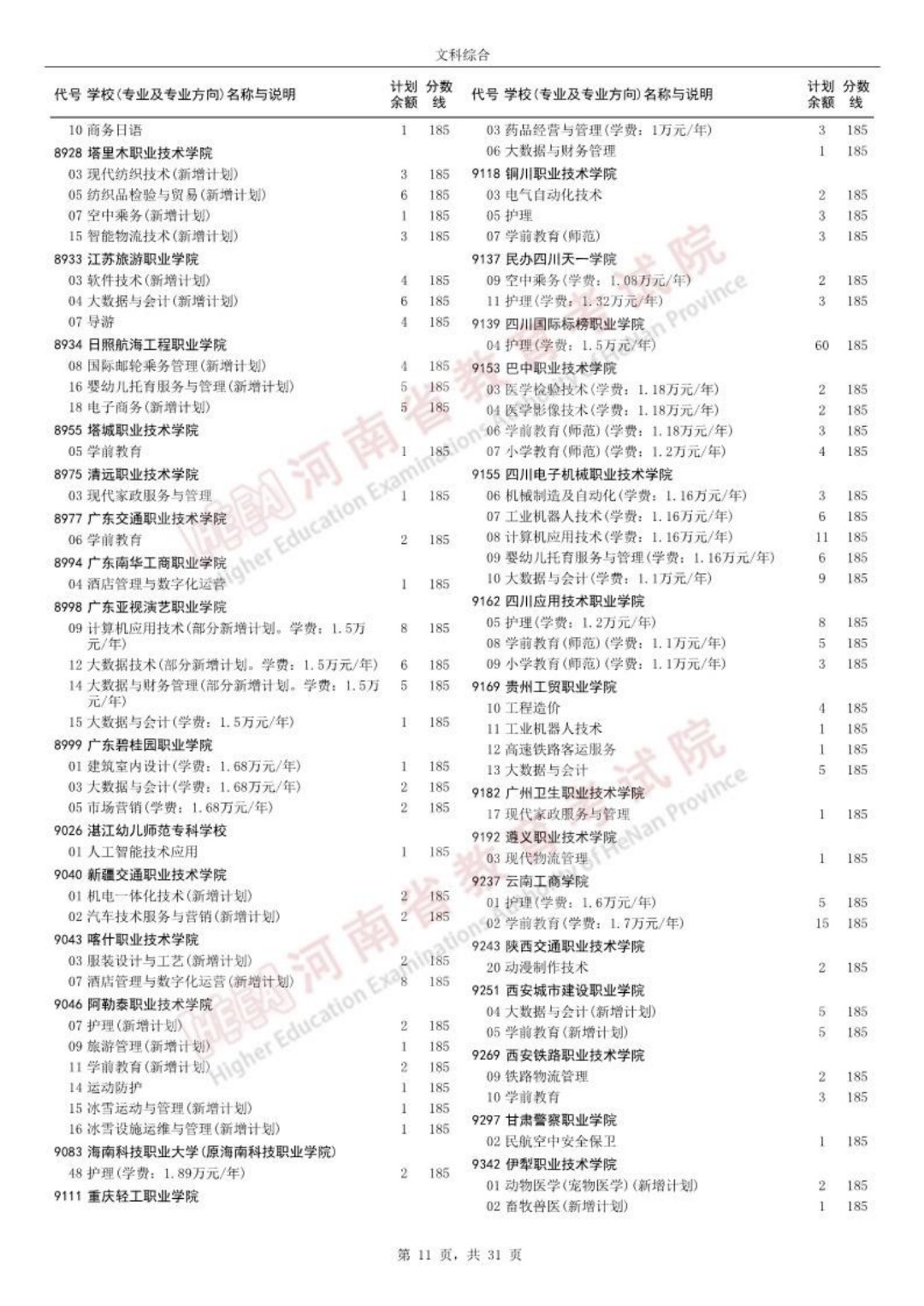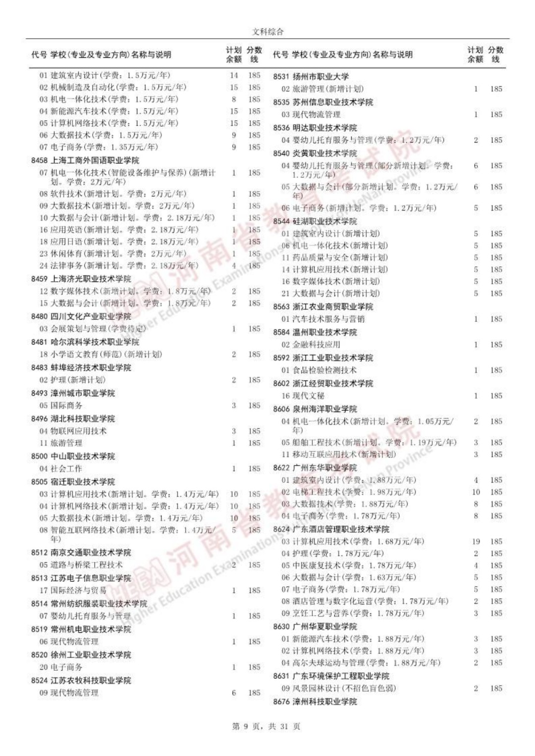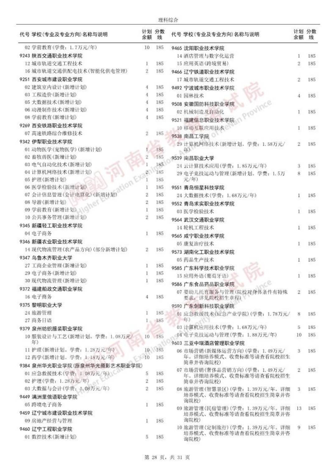 2023年河南高职高专批征集志愿院校分专业名单公布08-15