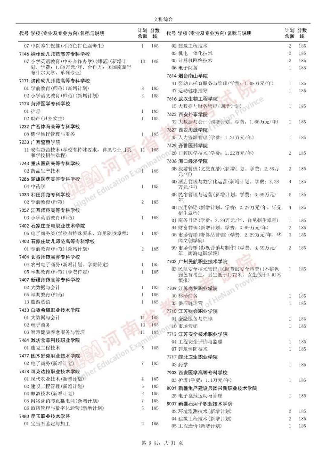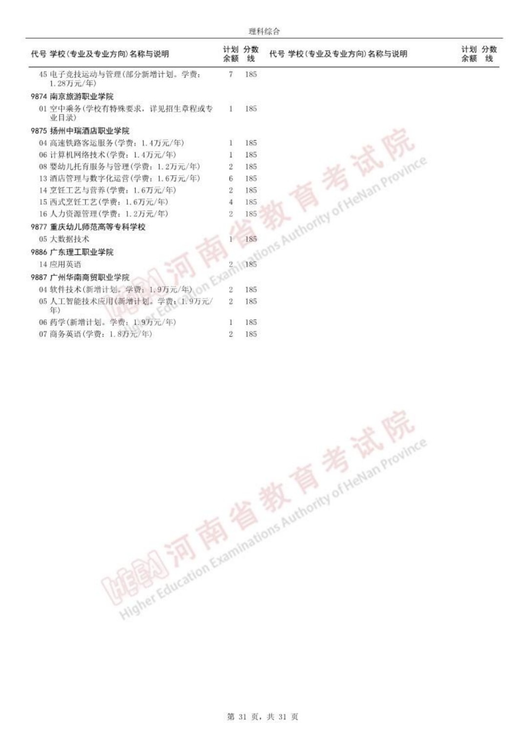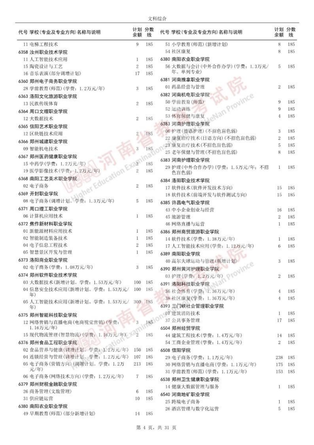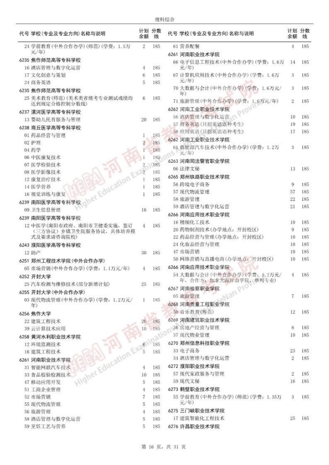 2023年河南高职高专批征集志愿院校分专业名单公布08-15