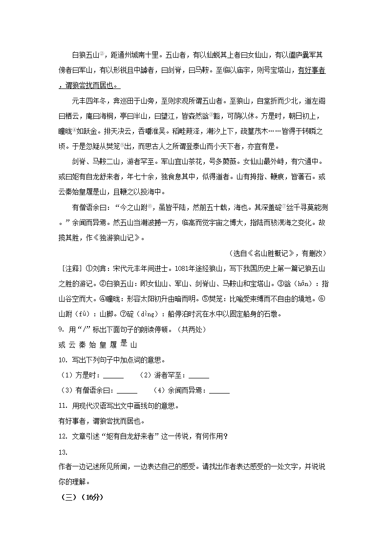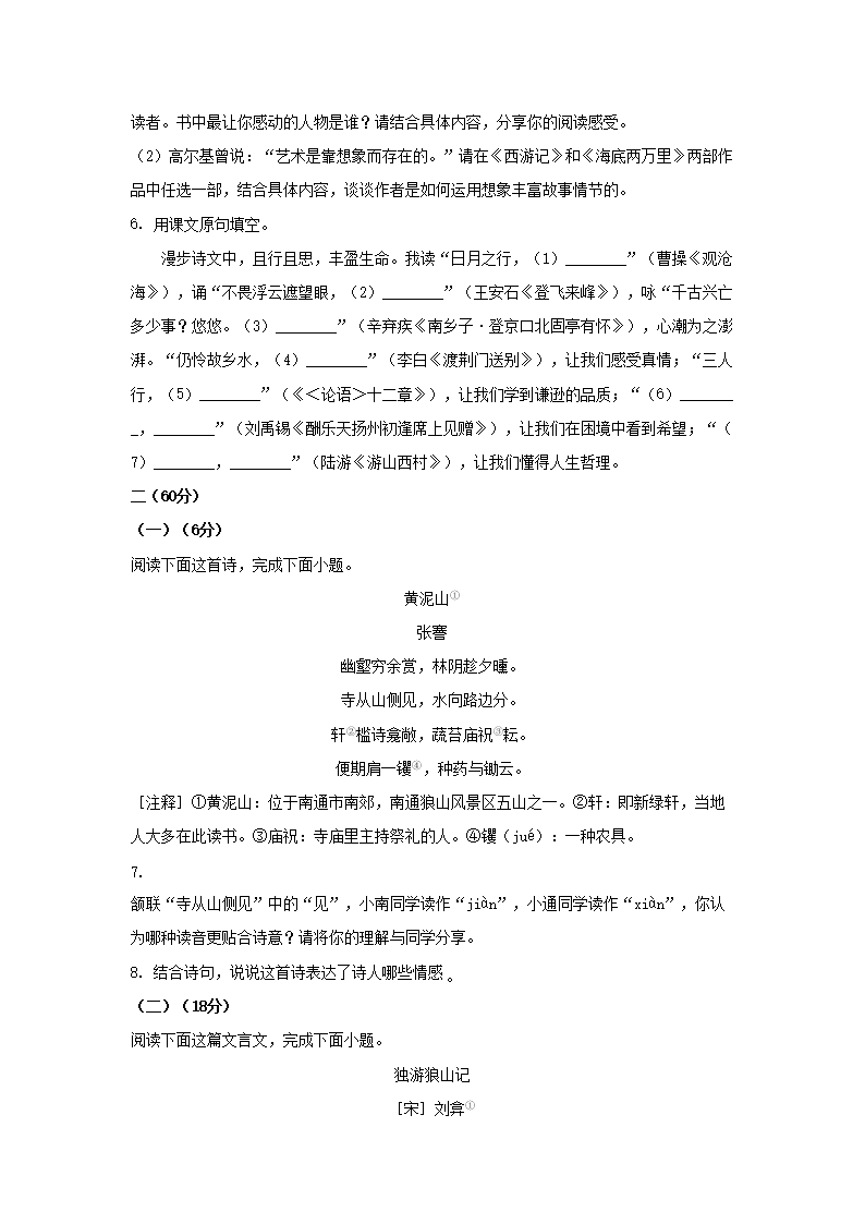 2023年江苏南通中考语文真题及答案(Word版)09-28
