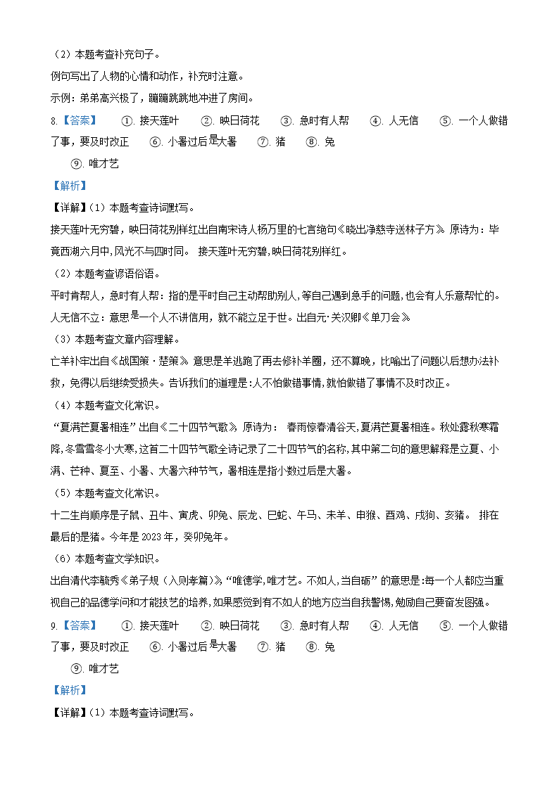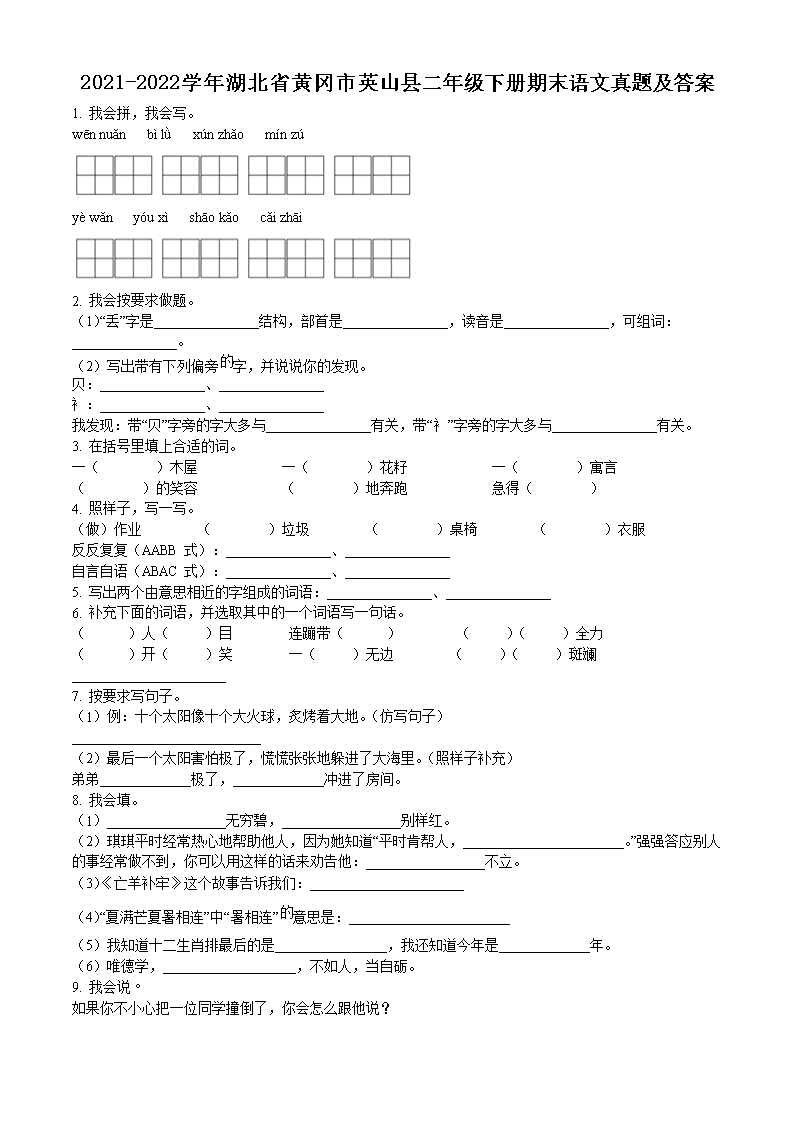 2021-2022学年湖北省黄冈市英山县二年级下册期末语文真题及答案(Word版)07-28