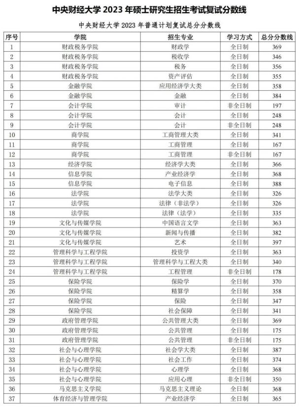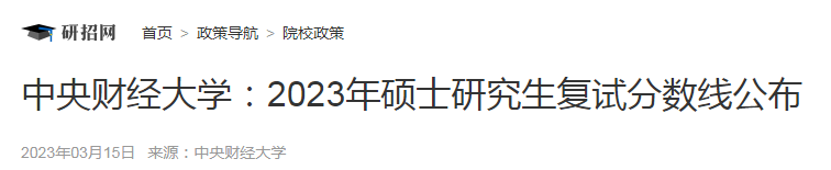 原文标题:中央财经大学:2023年硕士研究生复试分数线公布