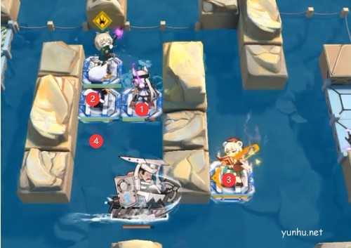 一开始先是让玩家了解水域机制,并会自动部署三名干员,之后的慕斯、卡缇、史都华德则要玩家自己部署。