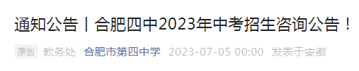 为帮助广大初中毕业生和家长了解合肥四中招生政策等信息,学校定于2023年7月5日—10日(温馨提示:因有重要工作安排,7日下午、8日上午校园封闭)面向初三毕业生及家长开放校园、提供咨询等。