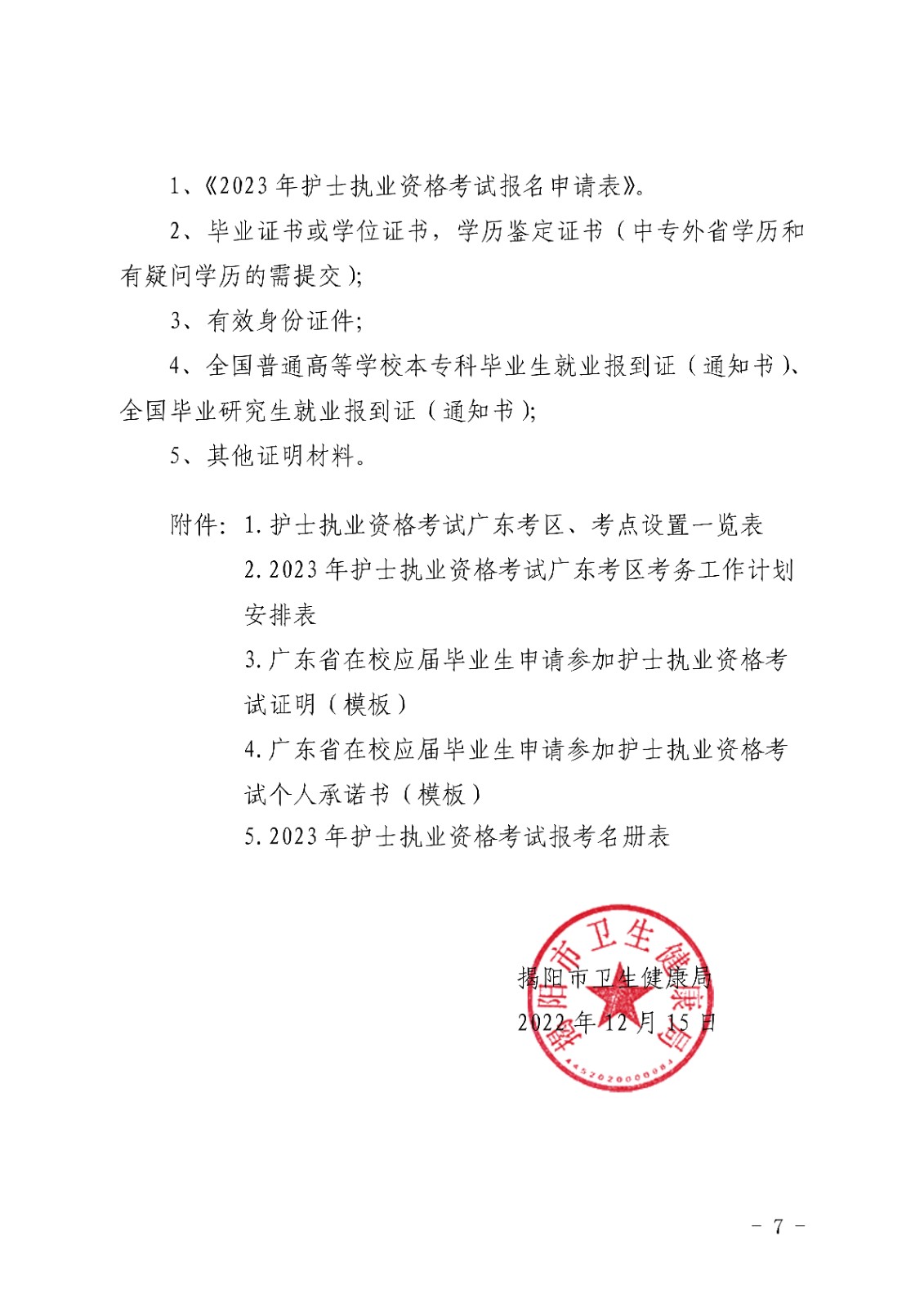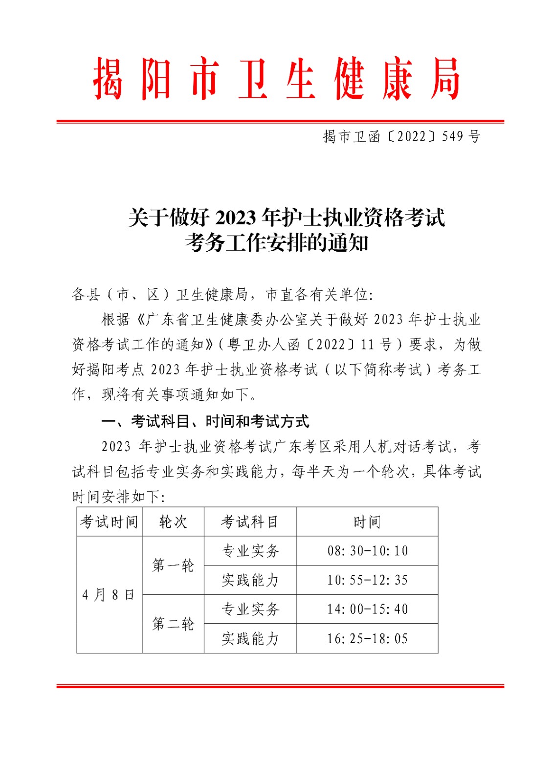 2023年广东揭阳护士执业资格考试考务工作安排的通知【资格核查时间12月30日前】12-30