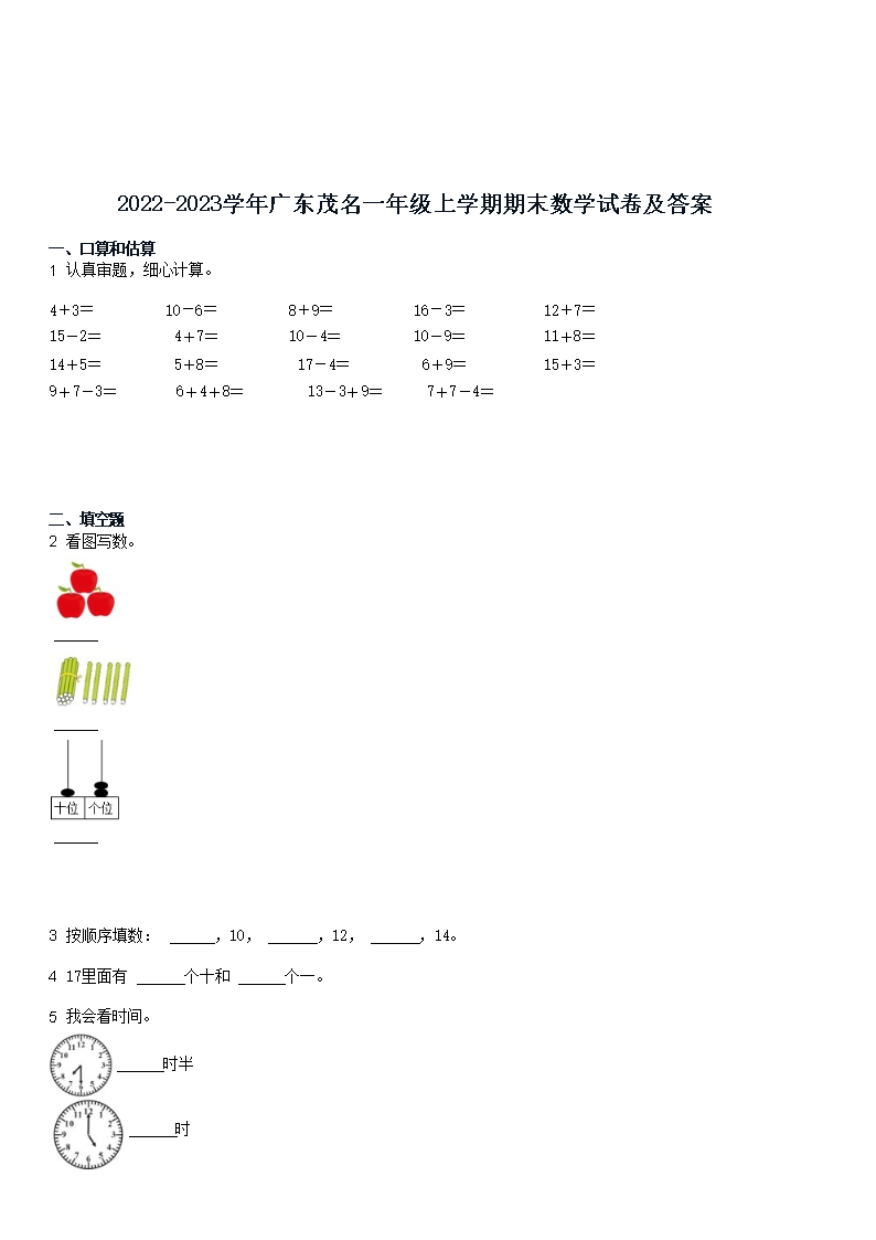 【文档预览】 文档大全网整理发布2022-2023学年广东茂名一年级上学期期末数学试卷及答案(Word版),前五页预览如下: