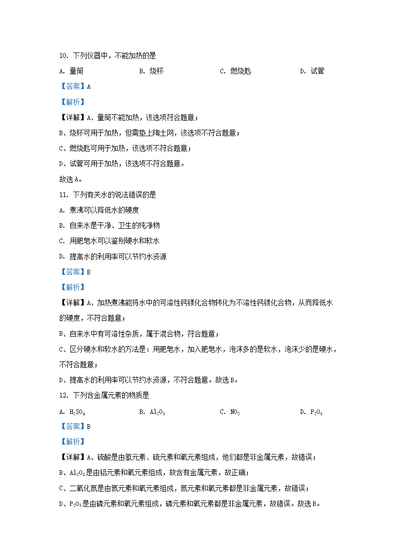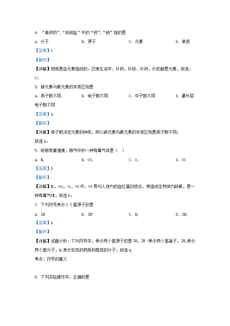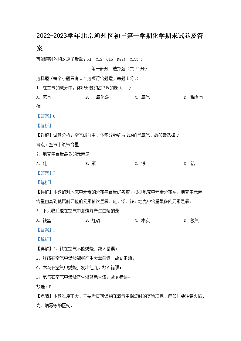 2022-2023学年北京通州区初三第一学期化学期末试卷及答案(Word版)08-04