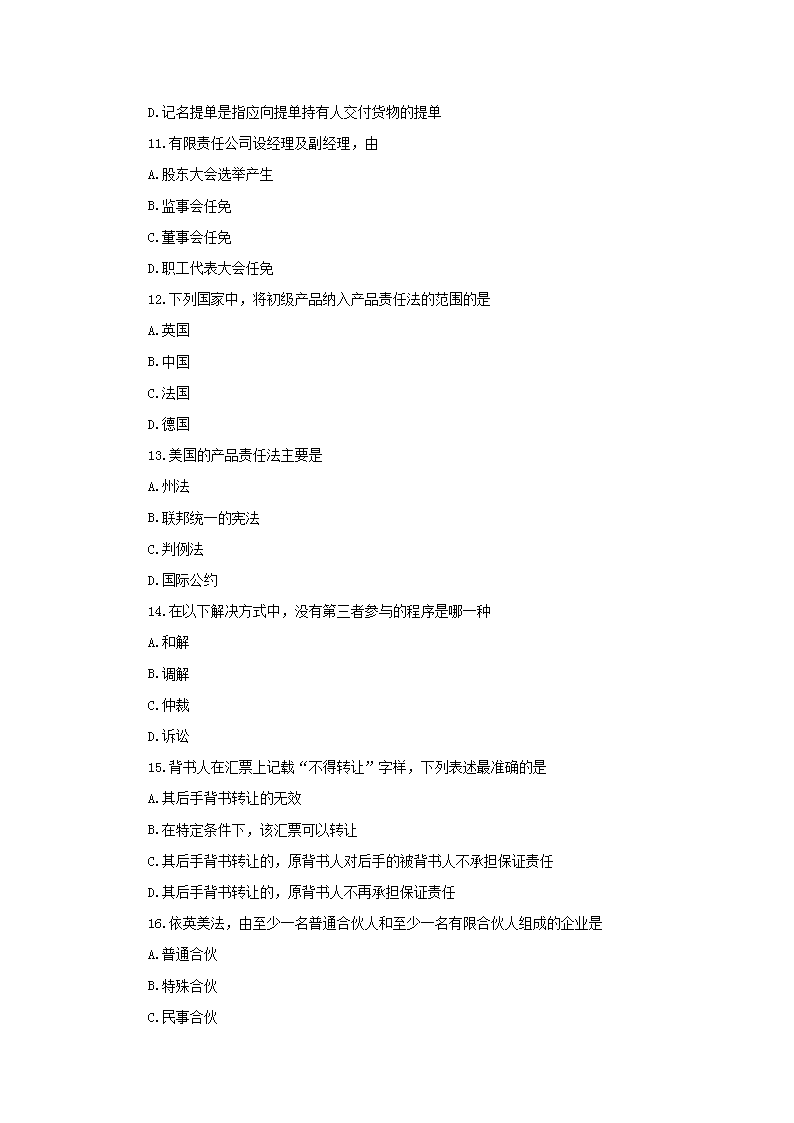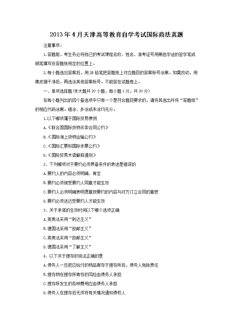 2013年4月天津高等教育自学考试国际商法真题(Word版)06-01