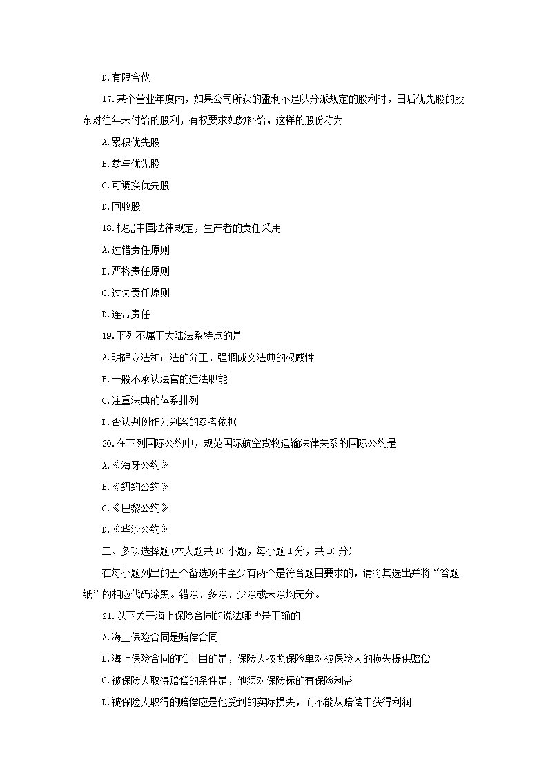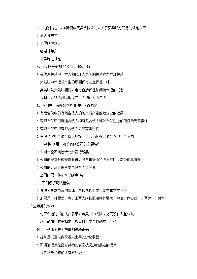 【文档预览】 文档大全网整理发布2013年4月天津高等教育自学考试国际商法真题(Word版),前五页预览如下: