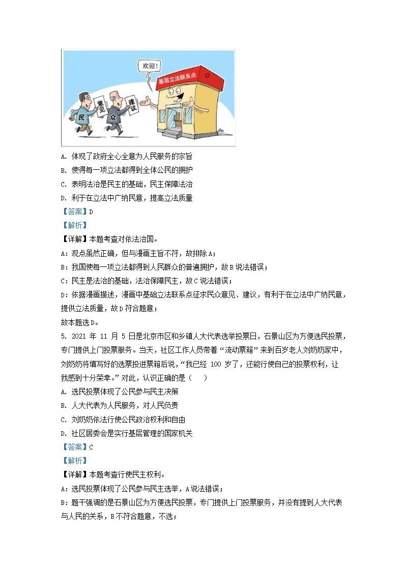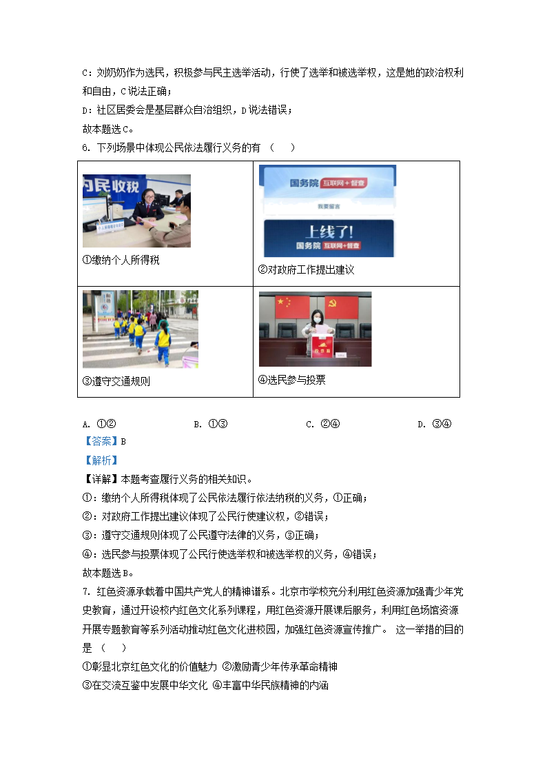 2021-2022学年北京石景山区初三第一学期道德与法治期末试卷及答案(Word版)07-18