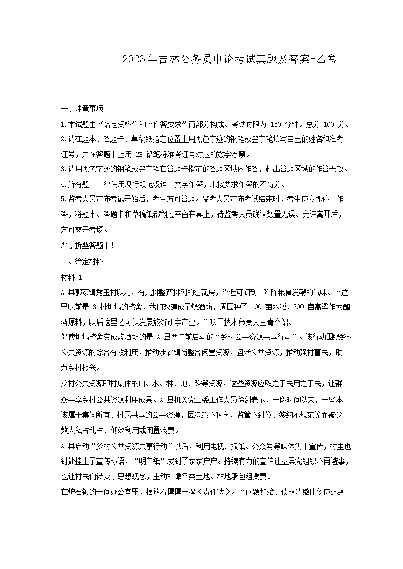 2023年吉林公务员申论考试真题及答案-乙卷(Word版)09-29
