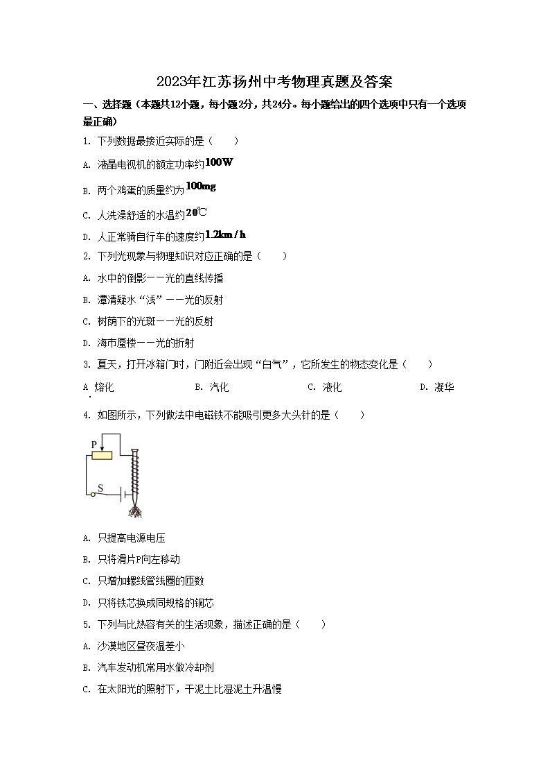 2023年江苏扬州中考物理真题及答案(Word版)09-26