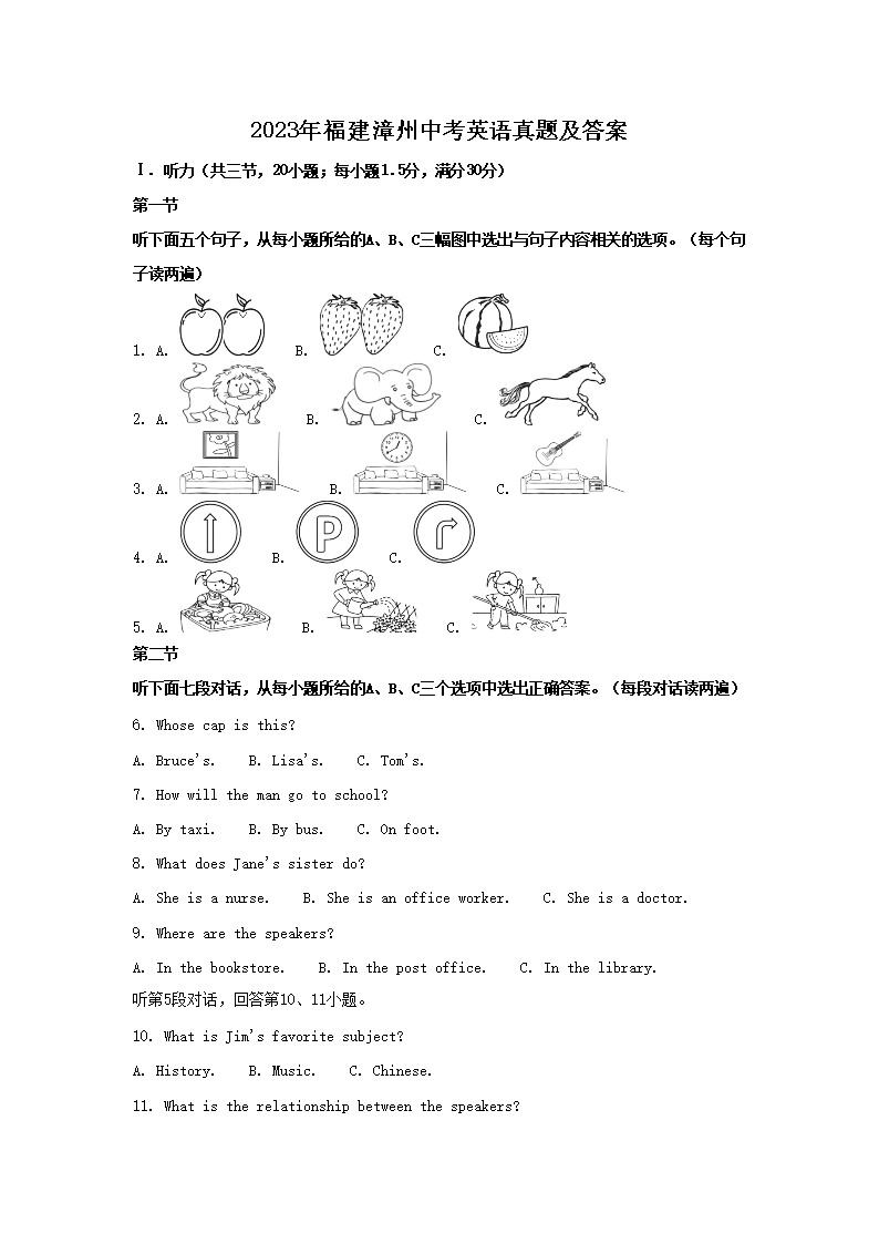 【文档预览】 文档大全网整理发布2023年福建漳州中考英语真题及答案(Word版),前五页预览如下: