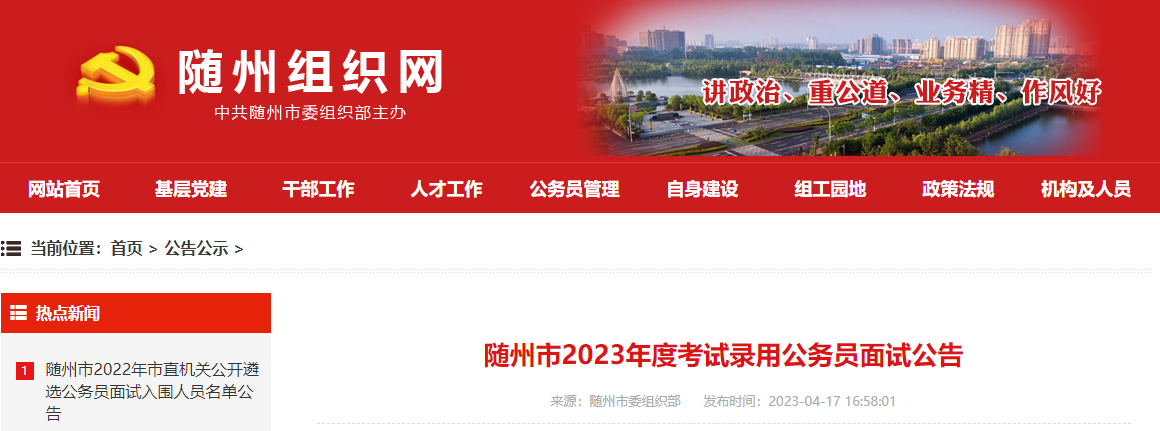 2023年湖北随州市考试录用公务员面试公告(面试时间:4月22日-23日)04-22
