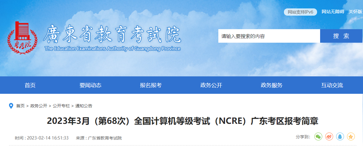 原文标题:2023年3月(第68次)全国计算机等级考试(NCRE)广东考区报考简章