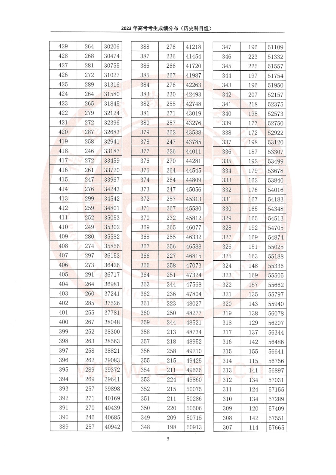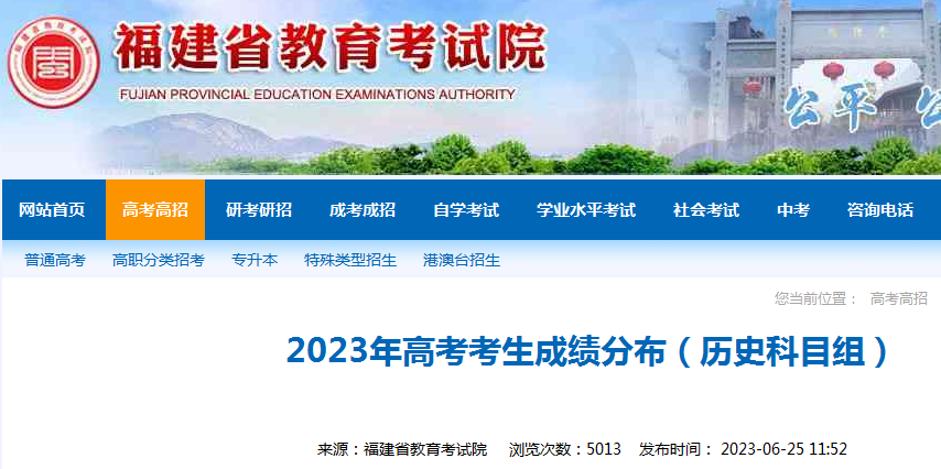 【#高考# 导语】©文档大全网高考频道从福建省教育考试院了解到,2023年福建高考考生成绩分布(历史科目组)。详情如下: