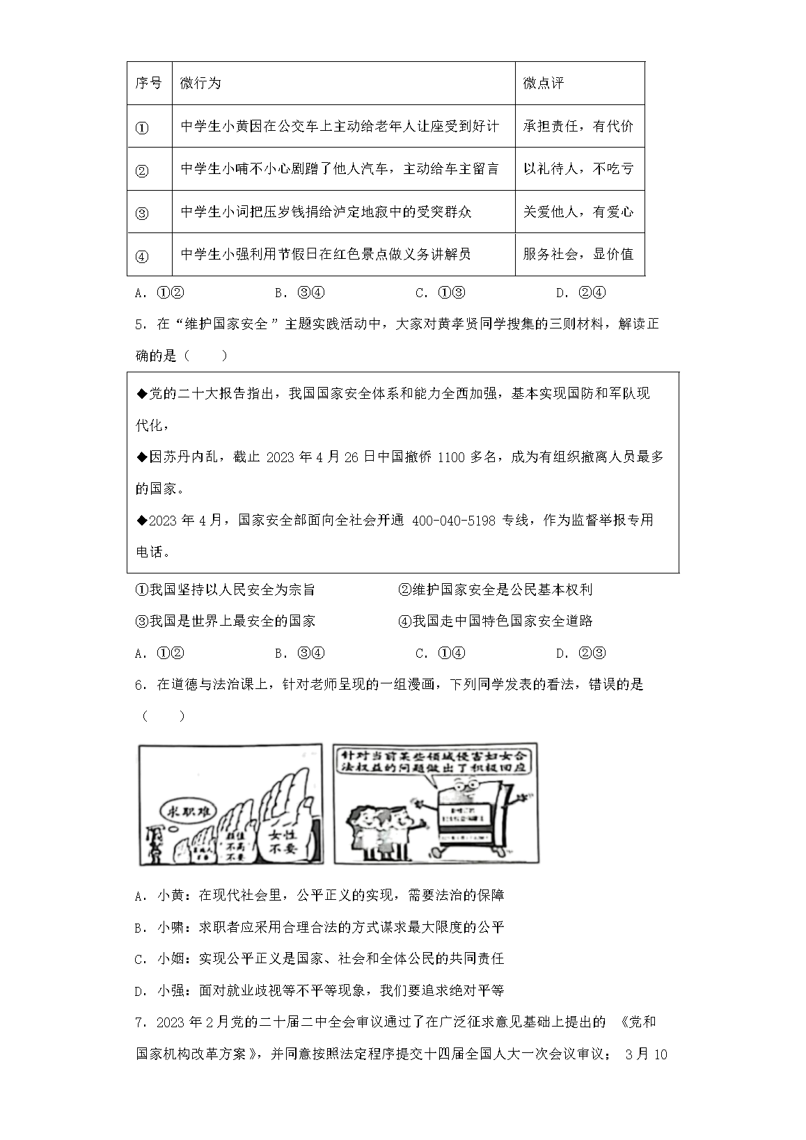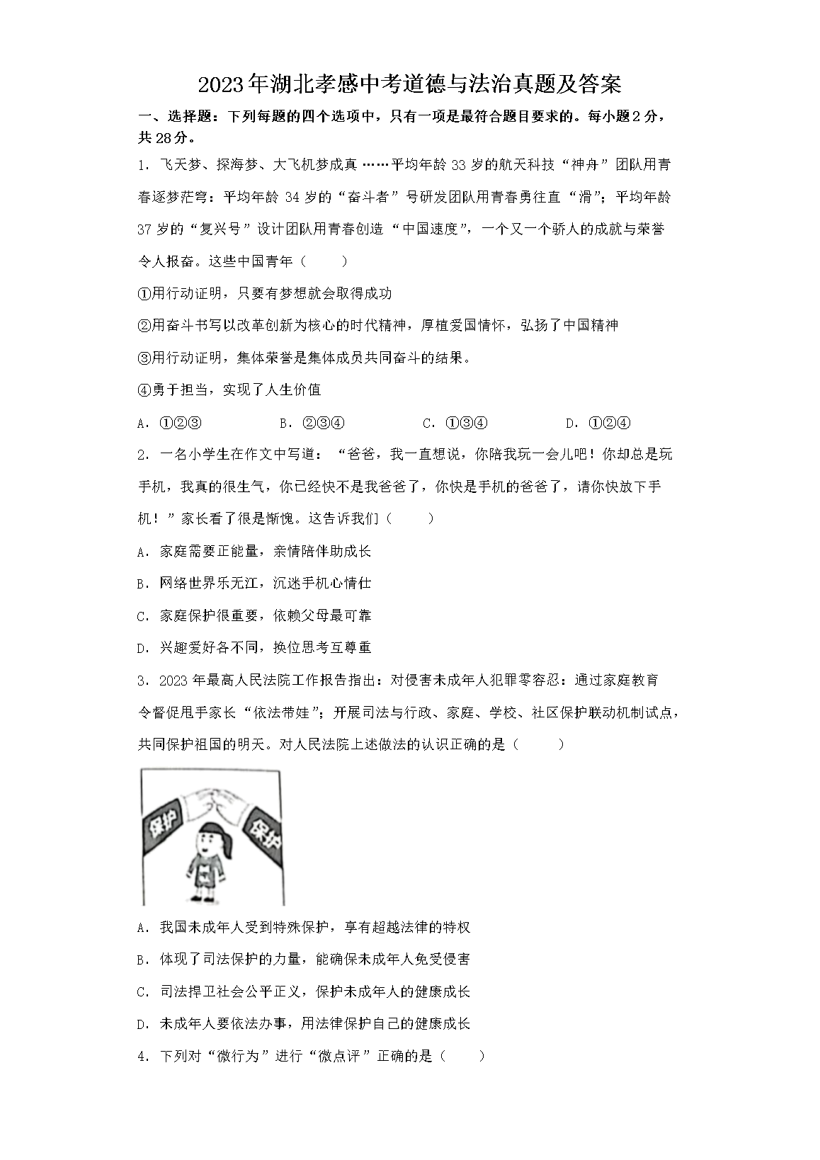 2023年湖北孝感中考道德与法治真题及答案(Word版)07-18