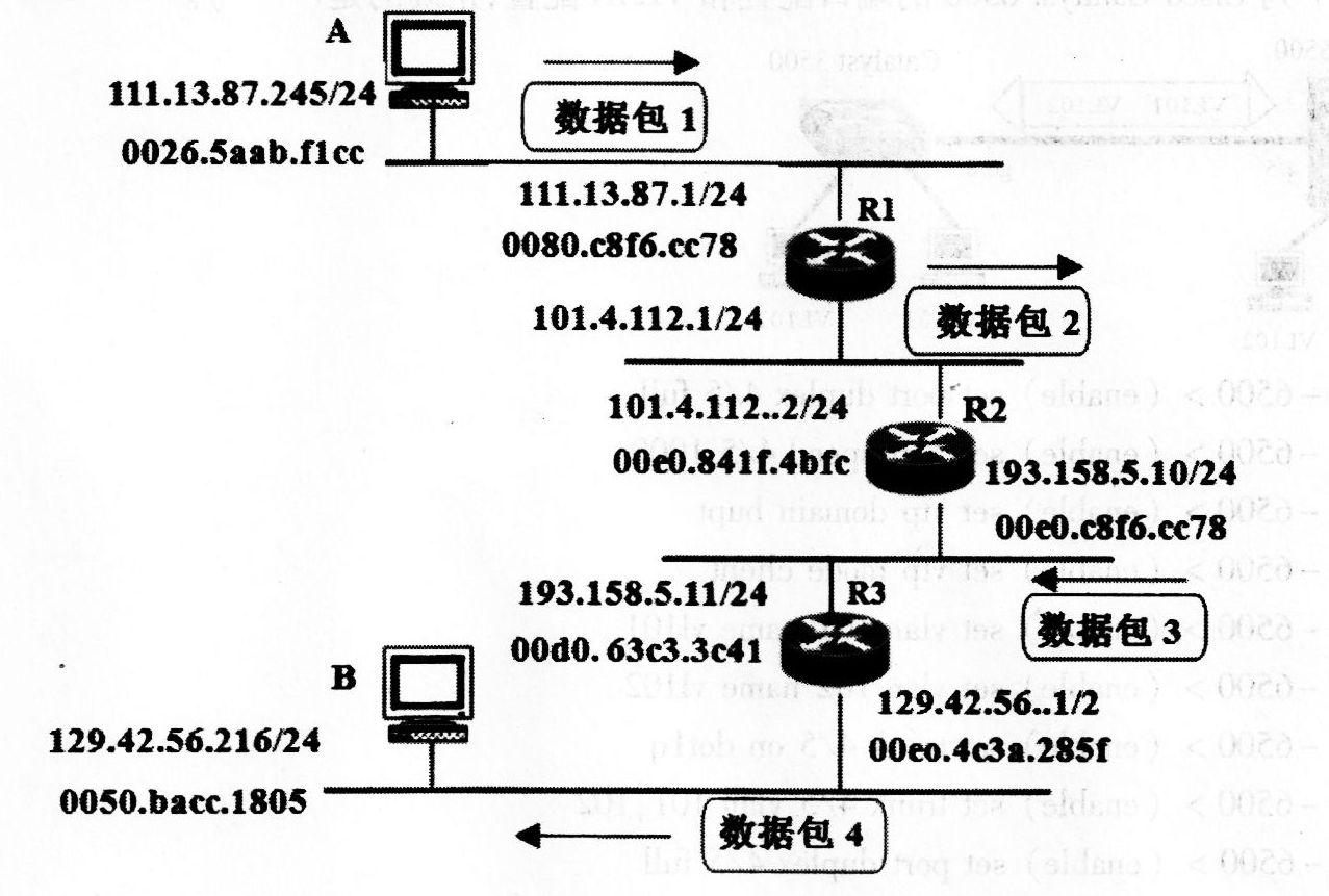 6、下图是主机A发送的数据包通过路由器转发到主机8的过程示意图