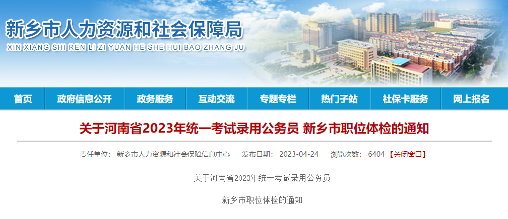 原文标题:关于河南省2023年统一考试录用公务员 新乡市职位体检的通知