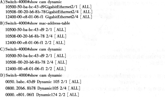 17.下列一台Catalyst4000显示交换表的命令及对应的显示信息均正确的是( )。