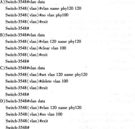 19.在Catalyst3548上建立ID号为l20,名为phy120的VLAN,并删除ID号为100,名为phy100的VLAN,正确的配置命令是( )。