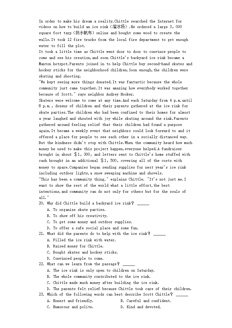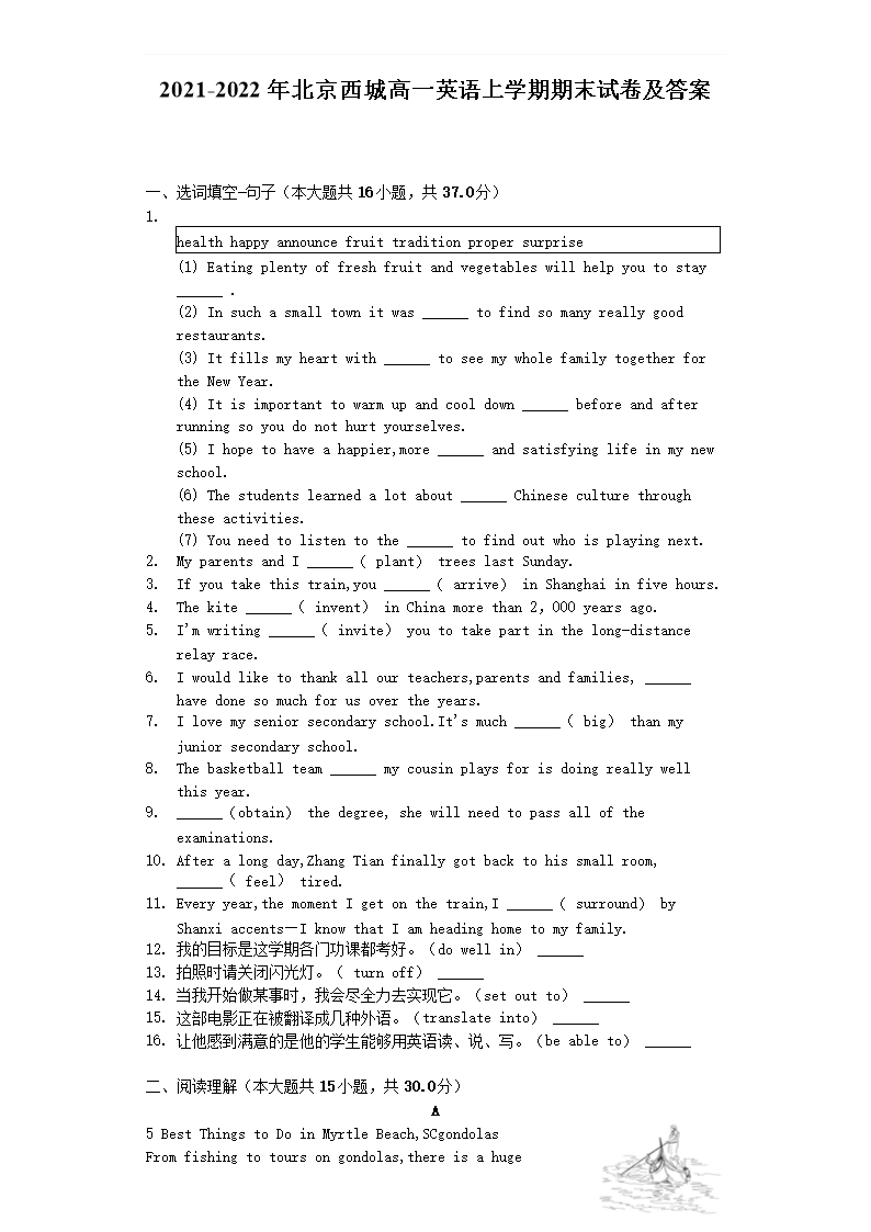 2021-2022年北京西城高一英语上学期期末试卷及答案(Word版)06-29