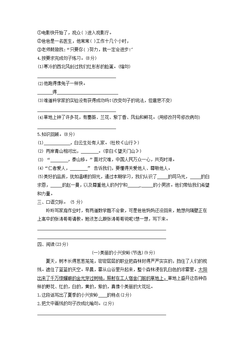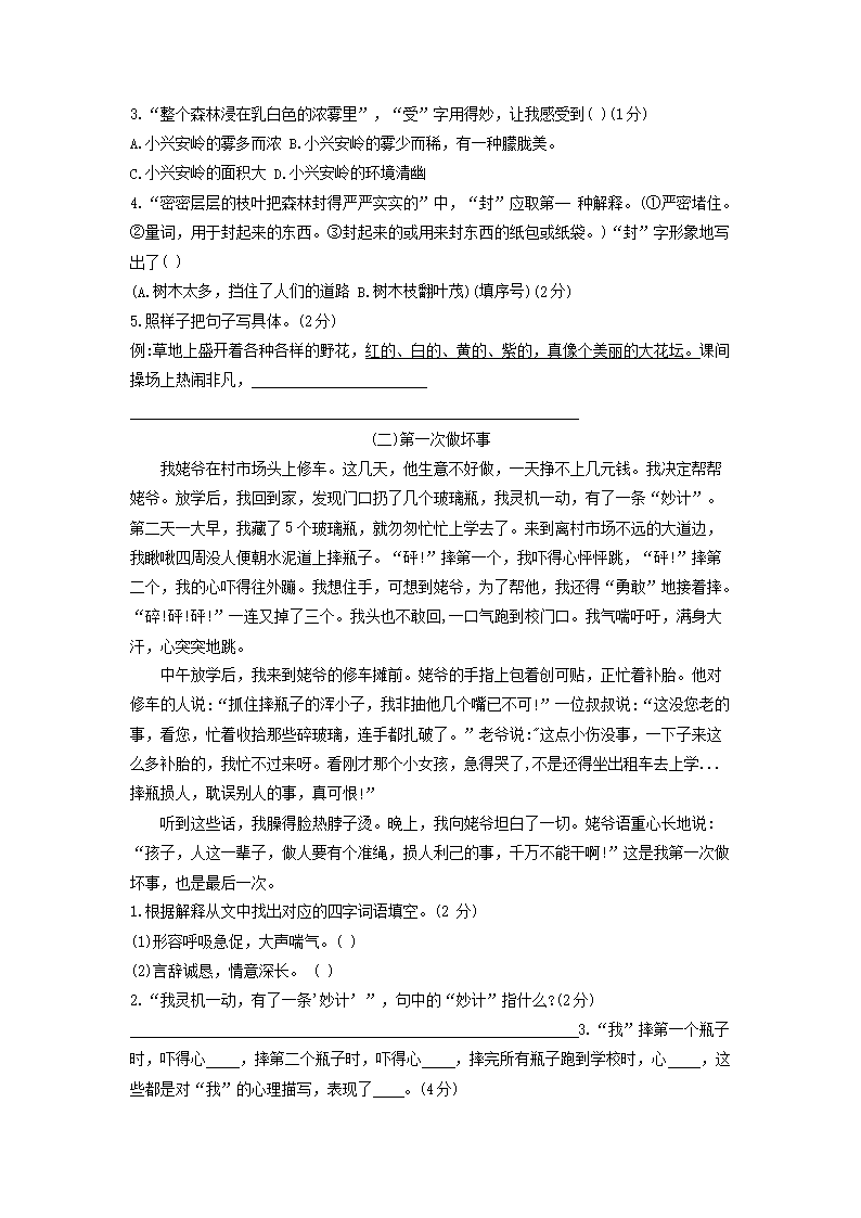 2022-2023学年湖南省株洲市炎陵县三年级上学期期末语文试题及答案(Word版)09-26