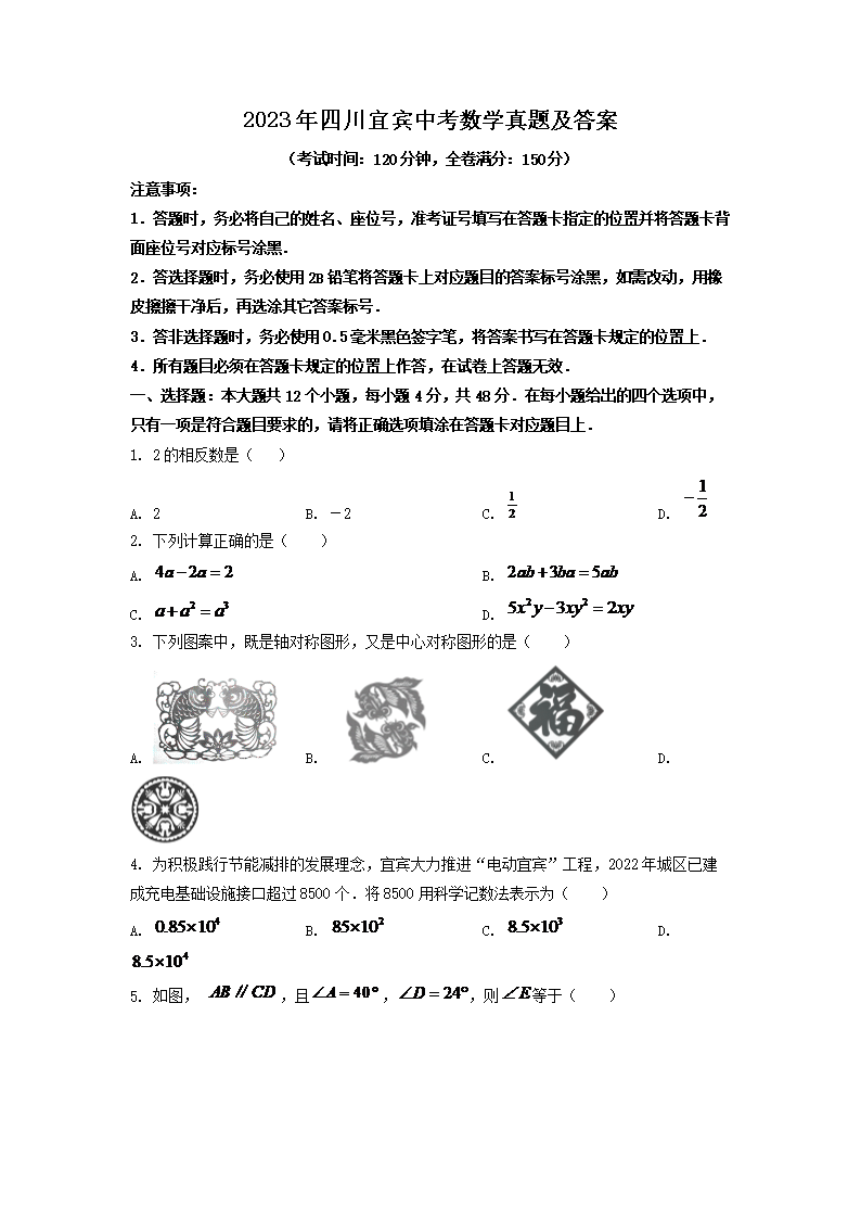 【文档预览】 文档大全网整理发布2023年四川宜宾中考数学真题及答案(Word版),前五页预览如下: