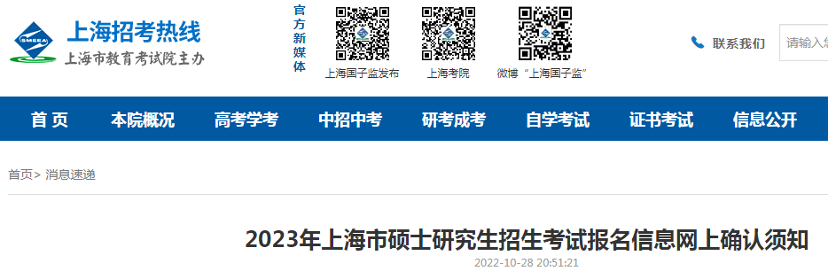 原文标题:2023年上海市硕士研究生招生考试报名信息网上确认须知