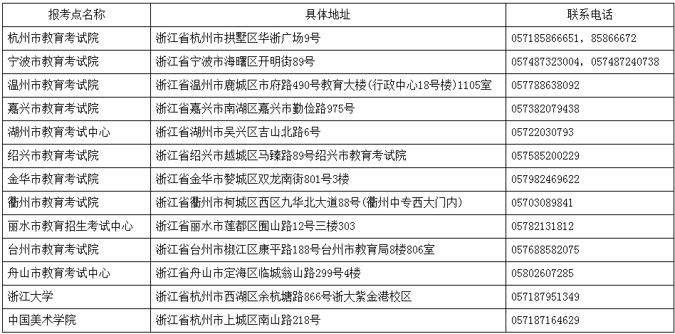 浙江省2023年硕士研究生招生考试报考点联系方式11-16