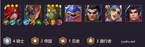 2、阵容分析:四骑士可格挡大部分伤害,还有2帝国真实伤害输出到爆,三潜行者切后排,非常完美的阵容。