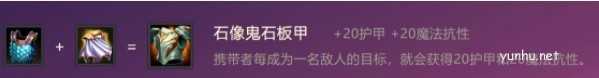 2、帝国之手出装分析:作为一个近战前排单位,被目标攻击数量较多,出石像鬼石板甲抗打。