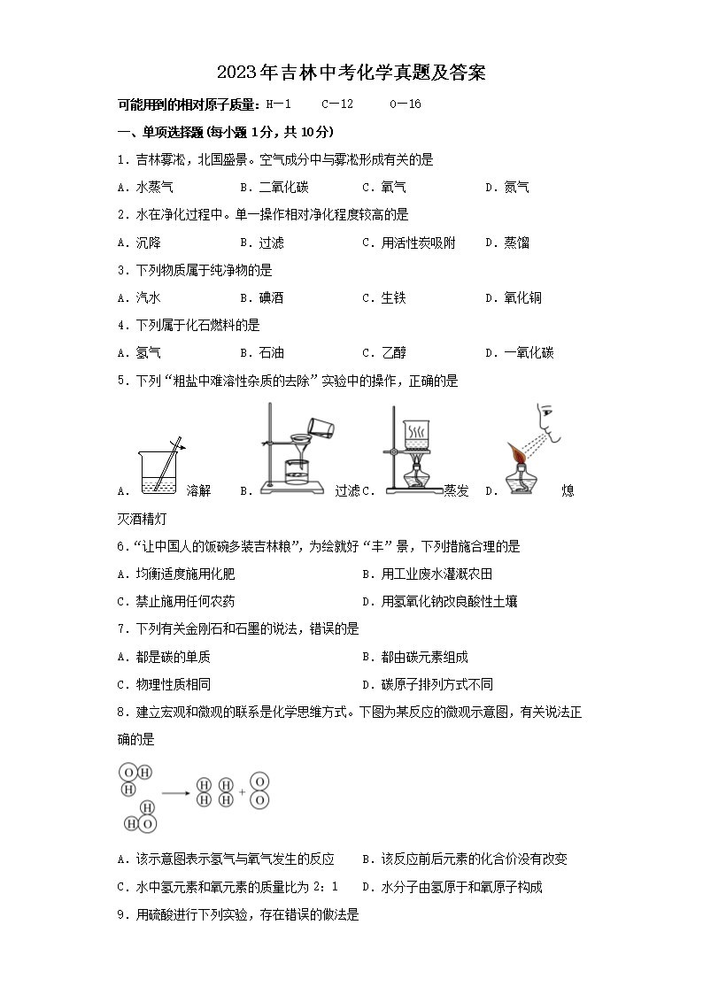 2023年吉林中考化学真题及答案(Word版)07-11