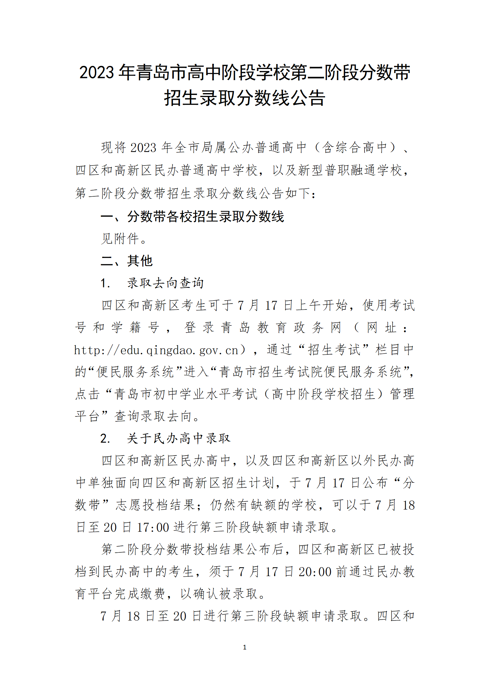 2023年山东青岛高中阶段学校第二阶段招生录取分数线公布07-18