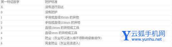 第一特征数字是用来测试产品能否防止固体进入。数字由0 至6,主要检测大至人体手指,小至沙尘微粒能否进入产品的内部。
