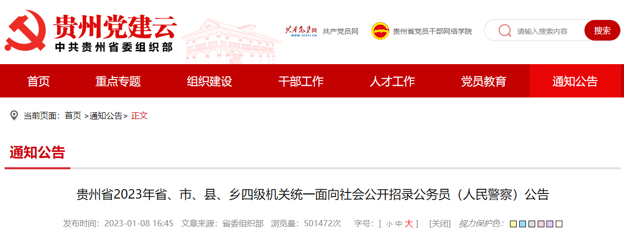 原文标题:贵州省2023年省、市、县、乡四级机关统一面向社会公开招录公务员(人民警察)公告