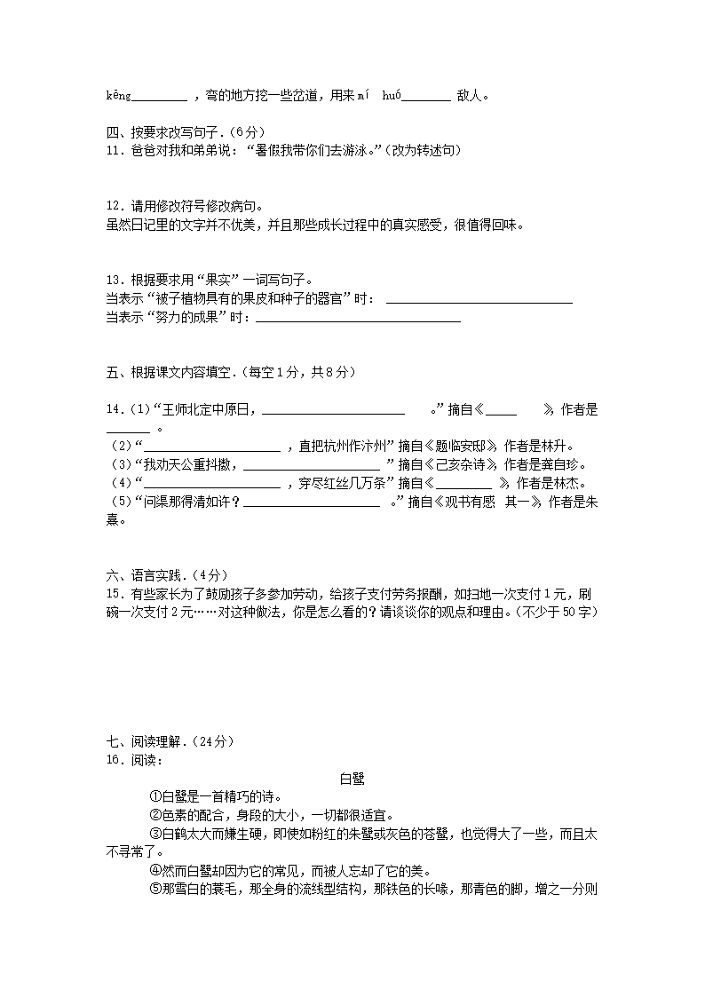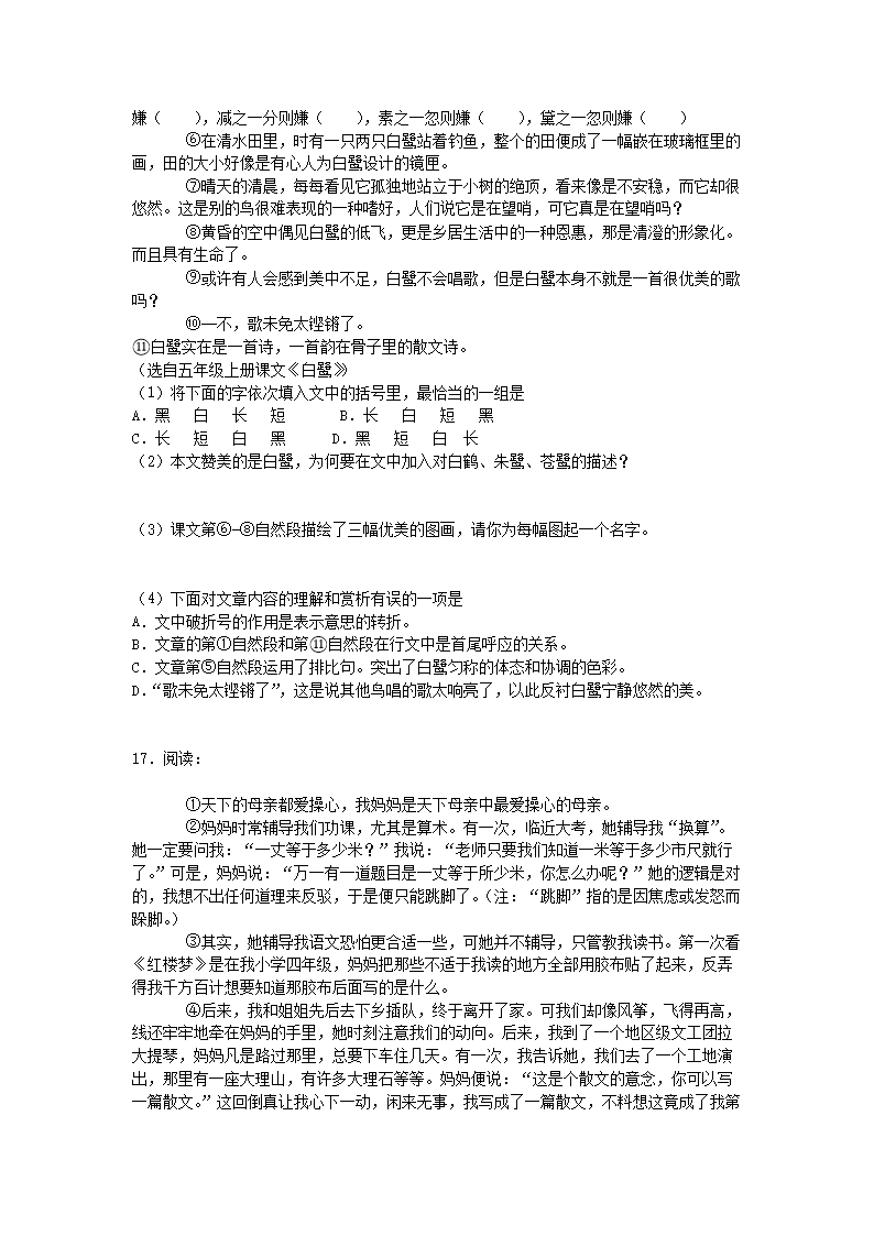 2019-2020学年广东广州越秀区五年级上册语文期末试卷及答案(Word版)08-01