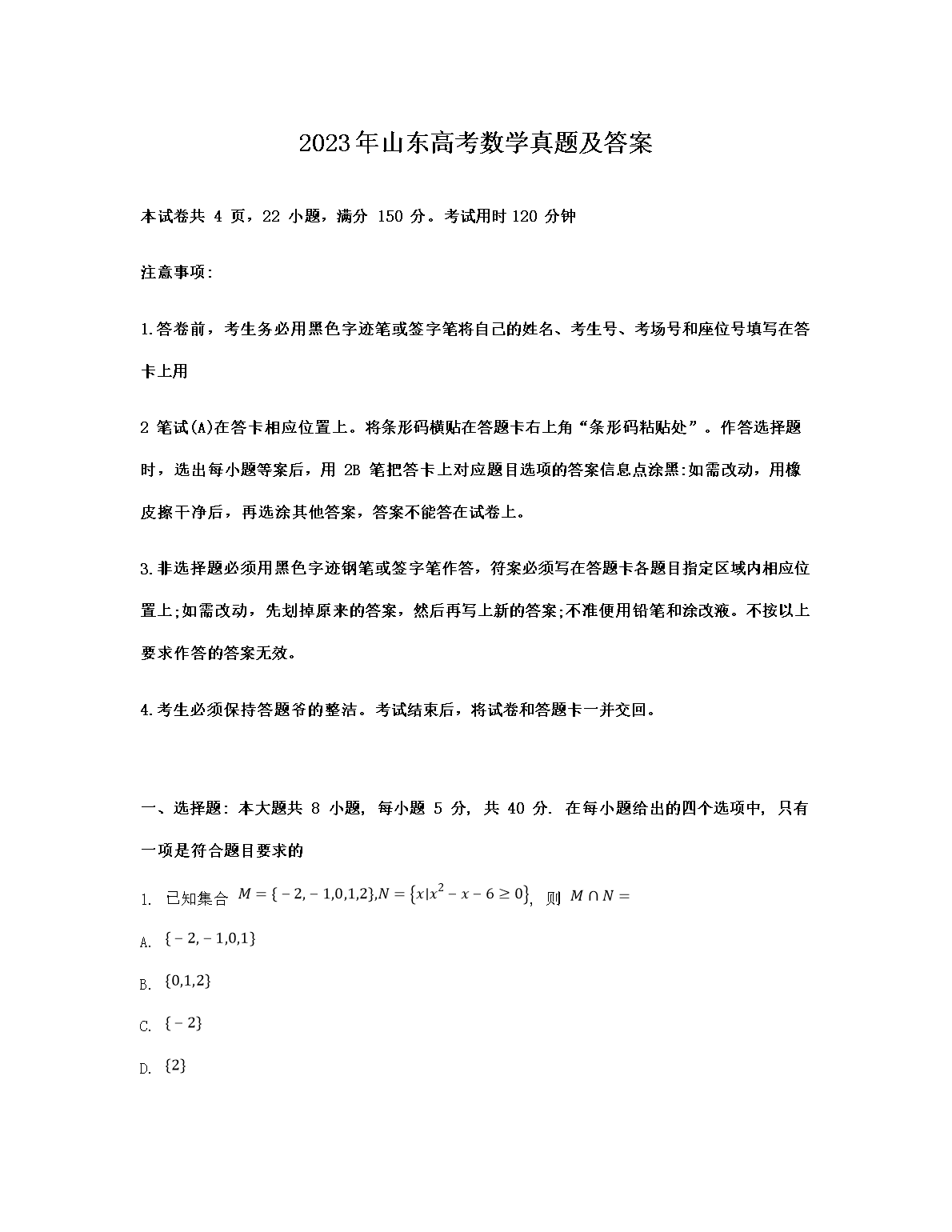 【文档预览】 文档大全网整理发布2023年山东高考数学真题及答案(Word版),前五页预览如下: