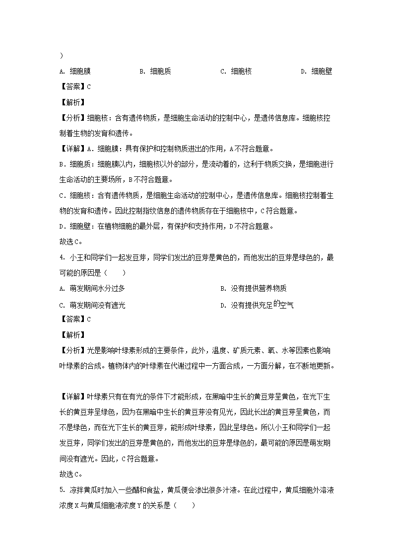 2023年甘肃金昌中考生物试题及答案(Word版)07-06