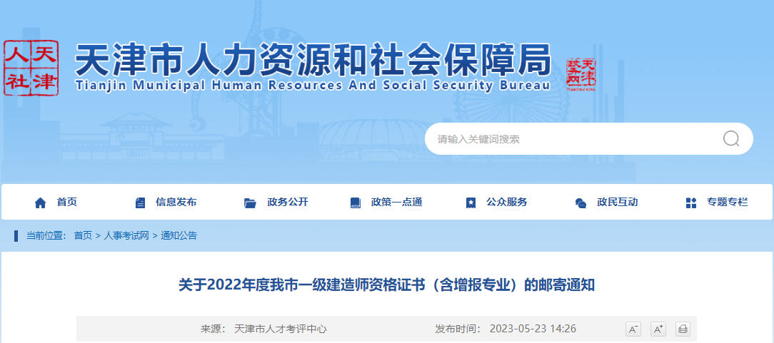 2022年天津一级建造师资格证书(含增报专业)的邮寄通知05-24