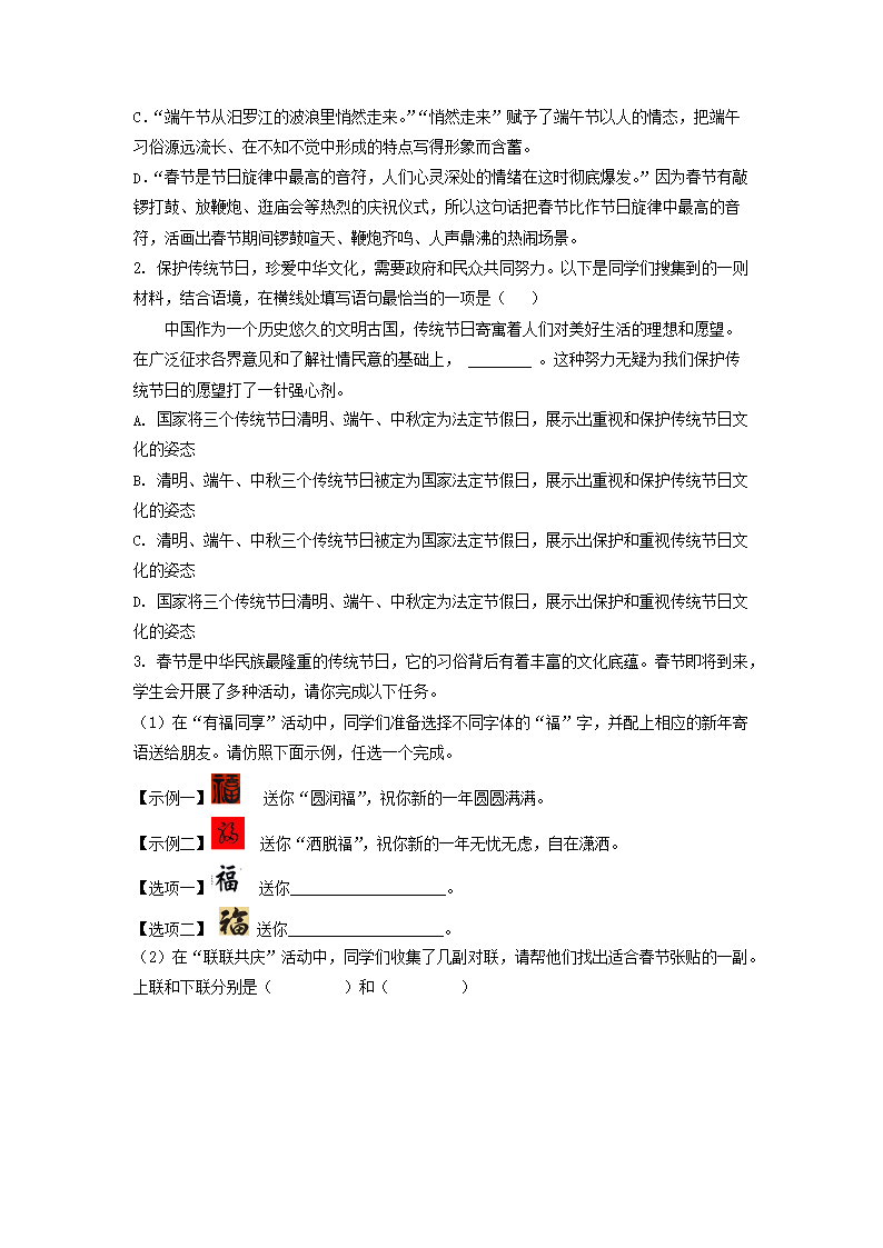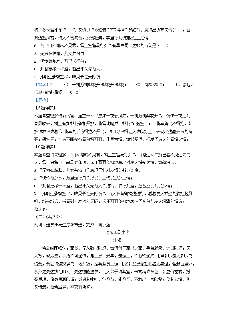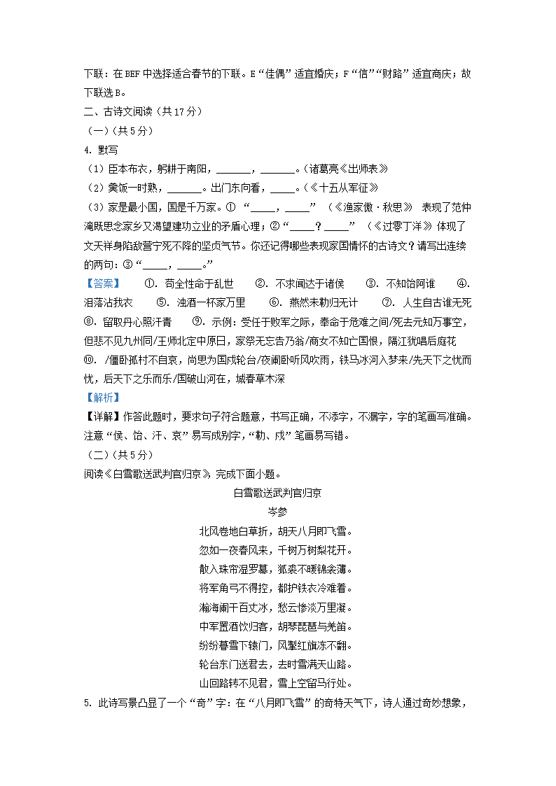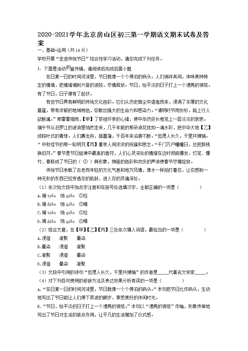 2020-2021学年北京房山区初三第一学期语文期末试卷及答案(Word版)07-15