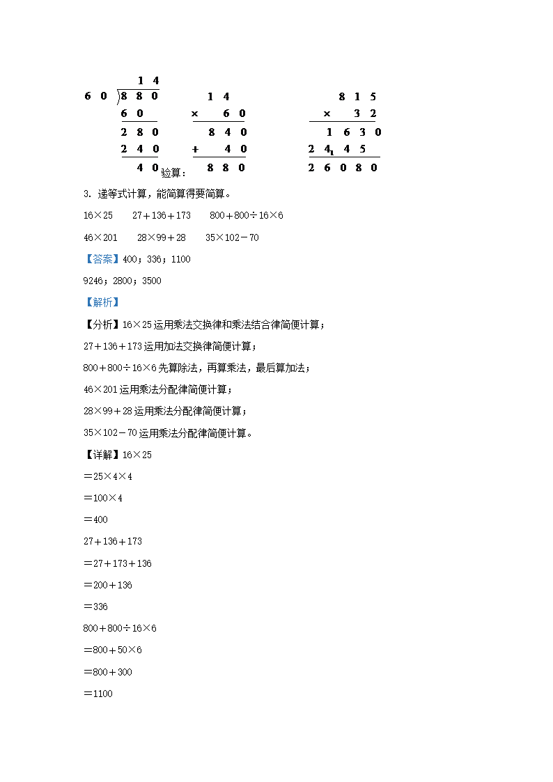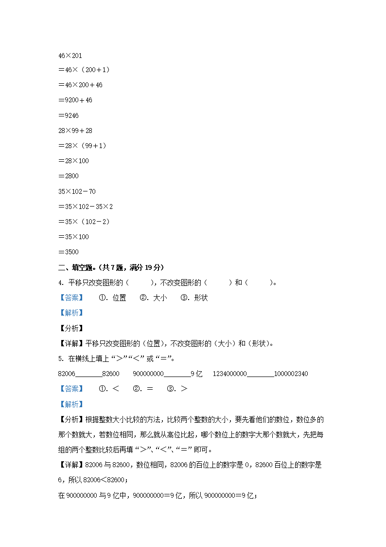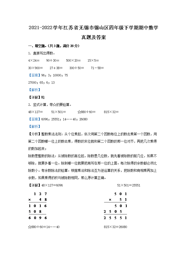 2021-2022学年江苏省无锡市锡山区四年级下学期期中数学真题及答案(Word版)07-19