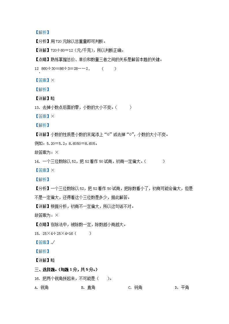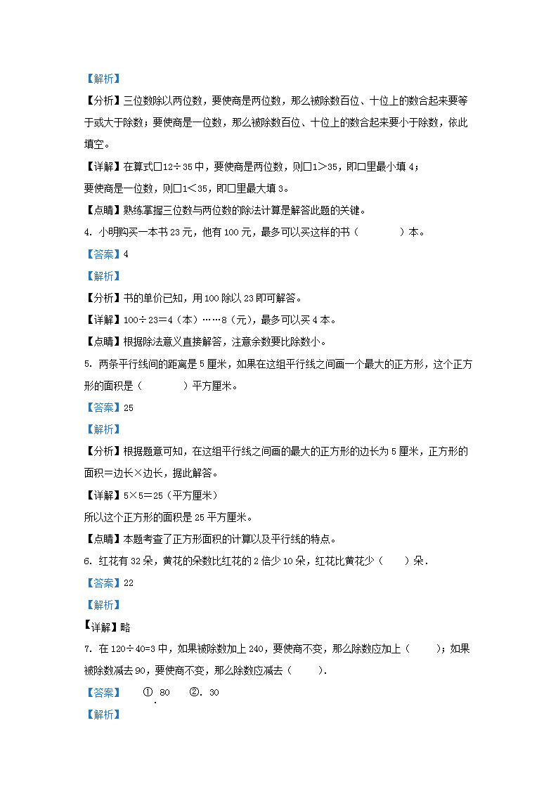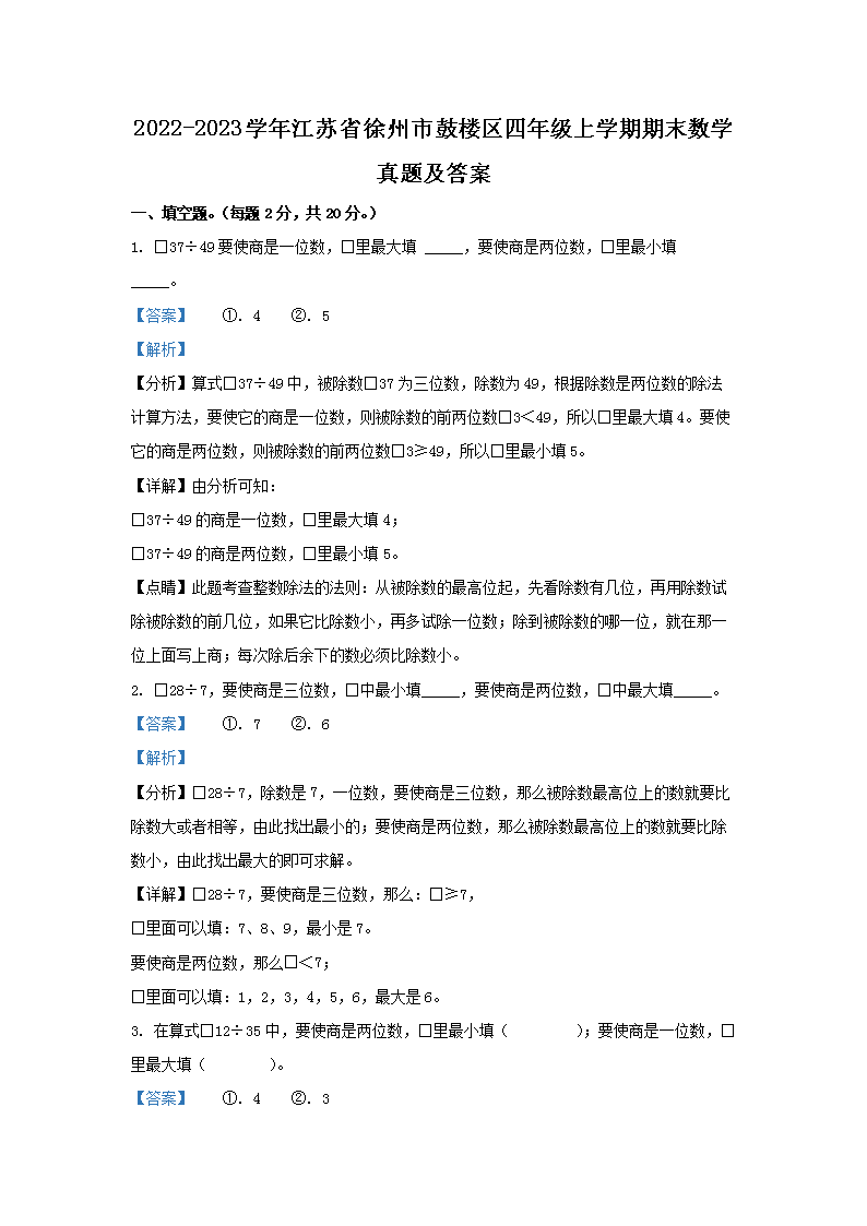 2022-2023学年江苏省徐州市鼓楼区四年级上学期期末数学真题及答案(Word版)09-01