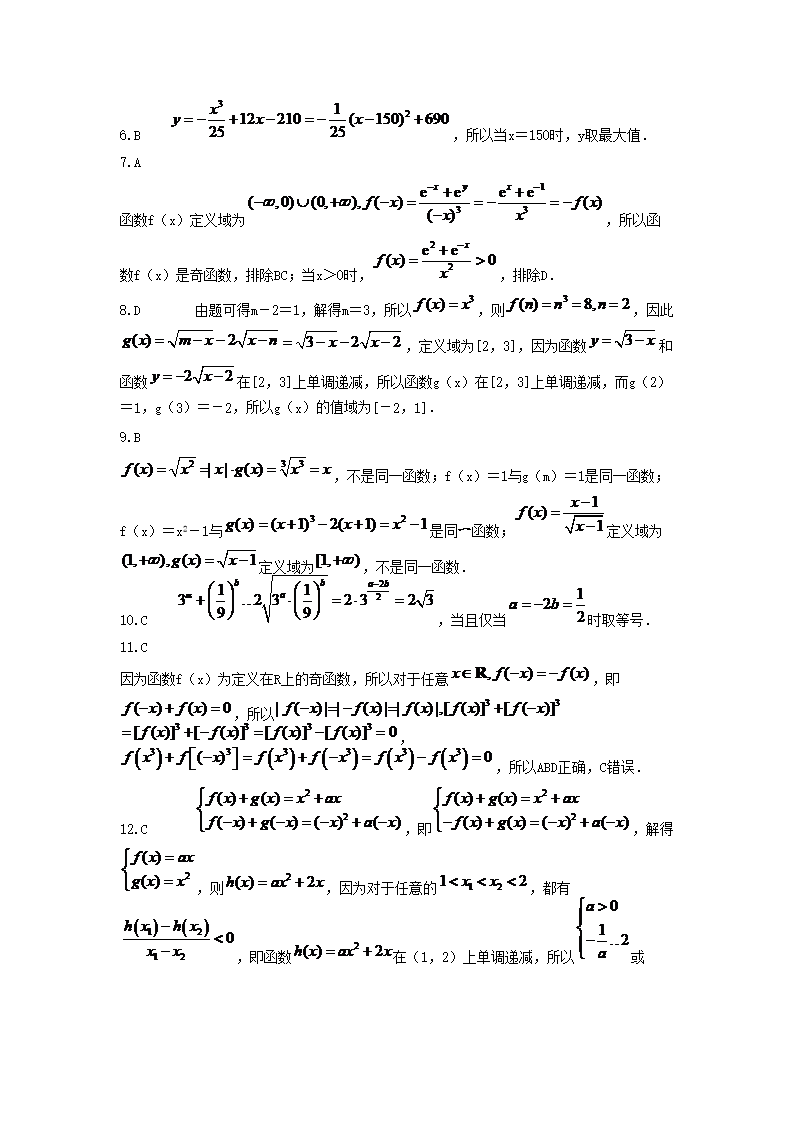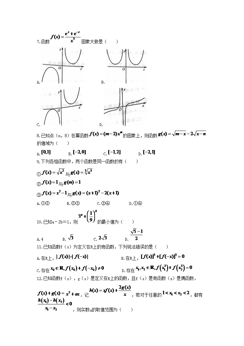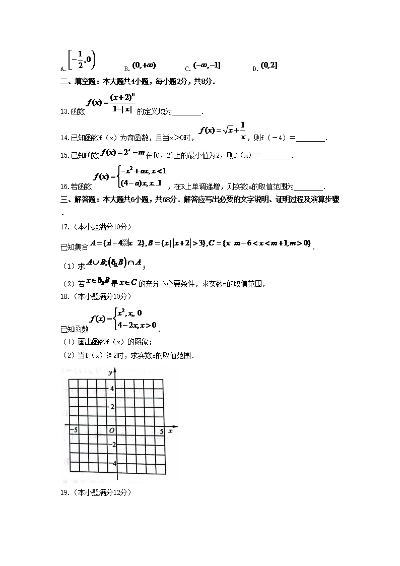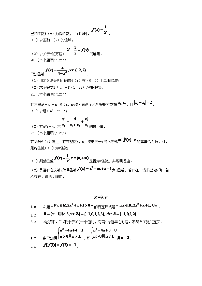 2021-2022年山西大同高一数学上学期期中试卷及答案(Word版)10-24