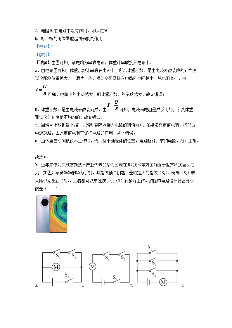 2021-2022学年江苏省泰州市泰兴市九年级上学期物理期末考试题及答案(Word版)10-10