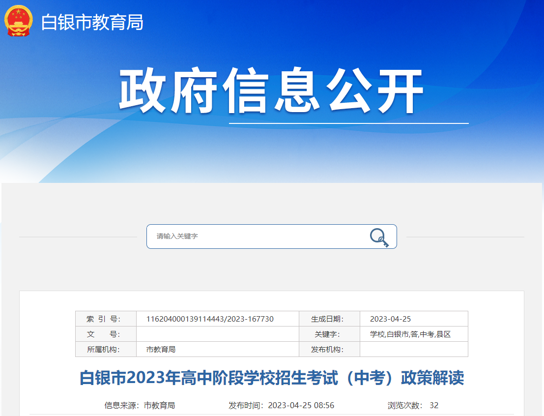 原文标题:白银市2023年高中阶段学校招生考试(中考)政策解读
